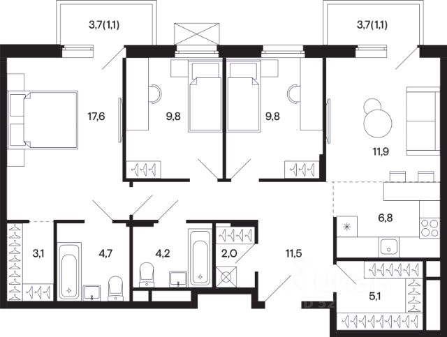 Эта современная квартира идеальное начало для вашей новой жизни. Продуманная планировка и качественные материалы ждут вашего воплощения самых смелых дизайнерских идей.