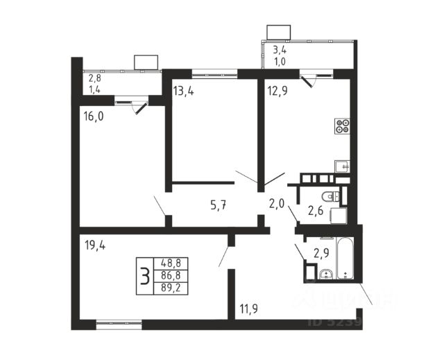 Продаётся 3-комнатная квартира в строящемся доме (Корпус 4), срок сдачи: II-кв. 2026, общей площадью 89.2 кв.м., на 4 этаже. Расположение, транспортная доступность Жилой комплекс комфорт-класса "Пироговская Ривьера" возводится на обширном участке в 49 га строительной компанией Rezidential Group и будет представлять собой мини-квартал из 20 6-9-тиэтажных монолитных корпусов. Квартал строится всего лишь в 10 км от МКАД (если ехать по Осташковскому шоссе). Общественный транспорт останавливается в 100 метрах от ЖК "Пироговская Ривьера". До ближайшей станции метрополитена "Медведково" около 25 минут на транспорте, который ходит еще до 4 станций подземки (расстояние примерно одинаковое для всех станций): "Алтуфьево", "Свиблово, "Бабушкинская", "Бибирево"". Инфраструктура В ЖК "Пироговская Ривьера" это комфортный для жизни мини-квартал со своими собственными инфраструктурными объектами: • два дошкольных детских учреждения на 450 мест (одно муниципальное, второе частное); • общеобразовательная школа на 750 учащихся; • 4 крытых наземных парковки на 3400 машиномест для хозяев, гостевые стоянки на 1343 автомобилей; • физкультурно-оздоровительный комплекс со своей школой олимпийских резервов; • взрослая и детская поликлиники; • торгово-развлекательный центр с кинотеатром и т.д. Территория ЖК "Пироговская Ривьера" будет полностью благоустроена. Здесь оборудуют: • многофункциональные игровые детские и спортплощадки; • пляжи и прочие зоны отдыха; • беговые и велосипедные дорожки протяженностью 7 км; • зеленые зоны. Доступ на жилой участок ЖК "Пироговская Ривьера" будет ограничен. По периметру его территория ограждена, работает круглосуточное видеонаблюдение, охраняет жильцов профессиональная служба безопасности. Примерно в двух километрах от комплекса расположены школы, детские сады, поликлиника, больница, а из торговых объектов супермаркеты "Пятерочка" и "Монетка". Экологическая ситуация в этой местности благополучная. Поблизости находится Пироговское водохранилище, а также лесопарковая зона в некоторых квартирах окна будут выходить именно на нее. Надежность застройщика Застройщиком ЖК "Пироговская Ривьера" выступает Rezidental Group перспективная компания, вошедшая на строительный рынок в 2013 году. Основное направление деятельности организации девелоперское, а портфолио ее уже насчитывает ряд крупномасштабных объектов, в числе которых торговые и офисные здания различных архитектурных планировок. Компания предоставляет аудитории обширный выбор профессиональных сервисов, в том числе: брокерские услуги, реализацию строительных проектов и управление ими. Работа Rezidental Group получила признание и весьма высокую оценку не только у клиентов, но и в среде профессионалов в сфере строительства. Компания быстро развивается и расширяет сегмент своих коммерческих интересов. Архитектура Все 20 корпусов ЖК "Пироговская Ривьера" строятся по монолитной технологии с фасадом, облицованным полированным кирпичом типа "Лунный камень". Швы