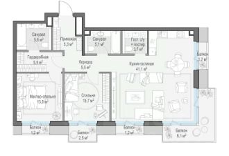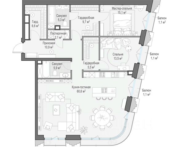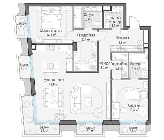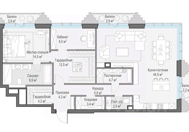 Старт продаж в новом клубном доме Климашкина 7/11 Продаётся 3-комнатная квартира общей площадью 140.80 м². Климашкина 7/11 — клубный семейный дом с ультрасовременной архитектурой, в которую оправлена антикварная редкость — полностью сохраненный фасад особняка XIX века. В проекте всего 46 резиденций — ни одной лишней, ни одной случайной. На этаже — от двух до четырех квартир, что создает исключительную приватность, редкую даже для элитного сегмента. Окружение Расположенный в тихом интеллигентном квартале Пресненского района, клубный дом Климашкина 7/11 соседствует со знаковыми зданиями старой Москвы Пресненского района. Всего в нескольких шагах находится памятник конструктивизма Центр Зотов, мастерская Зураба Церетели и Римско-католический кафедральный собор, а также в пешей доступности — Музей русского импрессионизма, парк Красная Пресня и Патриаршие пруды, Театр Сатиры и Московский Зоопарк. Транспортная доступность — 5 минут до Садового кольца; — 5 минут до ТТК; — 10 минут до Делового центра; — 12 минут до Белорусского вокзала; Внутренняя инфраструктура — Просторное дизайнерское лобби с потолками до 5 м; — Собственный приватный ландшафтный сад от L BURO; — 2-х уровневый подземный паркинг на 55 машино-мест; — Собственный SPA и фитнес-центр; — Умные системы безопасности и сервис самого высокого уровня.