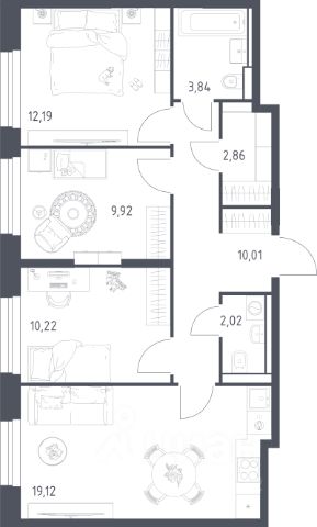 Комфортная планировка: три просторные изолированные комнаты.