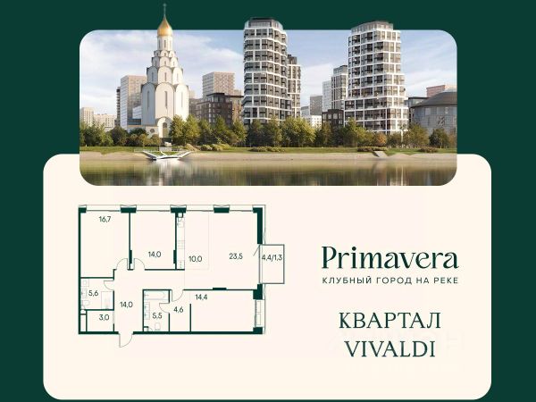 Клубный город на реке Primavera — это современный жилой комплекс премиум-класса, расположенный на первой береговой линии Москвы-реки в экологически чистом районе Покровское-Стрешнево. Под панорамными окнами квартир находится собственный экопарк с продуманной сетью прогулочных дорожек и современными детскими и спортивными площадками. За парком расположена набережная с собственным пляжем и зонами для отдыха. Клубный город на реке Primavera предлагает широкий выбор планировок для различных жизненных сценариев: от просторных однокомнатных квартир до пентхаусов и жилых помещений с террасами и патио. Выберите из 120 вариантов эргономичных планировок стандартного и евроформата. Из каждой квартиры открываются красивые виды на реку с углом обзора в 270 градусов. Дизайнерские лобби предлагают панорамный обзор на благоустроенный двор. Высокие потолки в 6 метров и качественная отделка создают атмосферу, схожую с пятизвездочными отелями. В Primavera есть всё необходимое для комфортной жизни в мегаполисе: • Образование для детей в шаговой доступности: 4 школы, 8 детских садов и развивающие центры с кружками и секциями. • Удобства на расстоянии приятной прогулки: супермаркеты, кафе, рестораны с верандами, салоны красоты, аптеки и многофункциональный центр для шоппинга и развлечений. • Умный дом: автоматизированное бесконтактное управление основными системами доступа и безопасности через мобильное приложение. Клубный город на реке Primavera выгодно сочетает комфорт городской жизни с близостью к природе. Живите в месте, где все создано для вашего удобства!