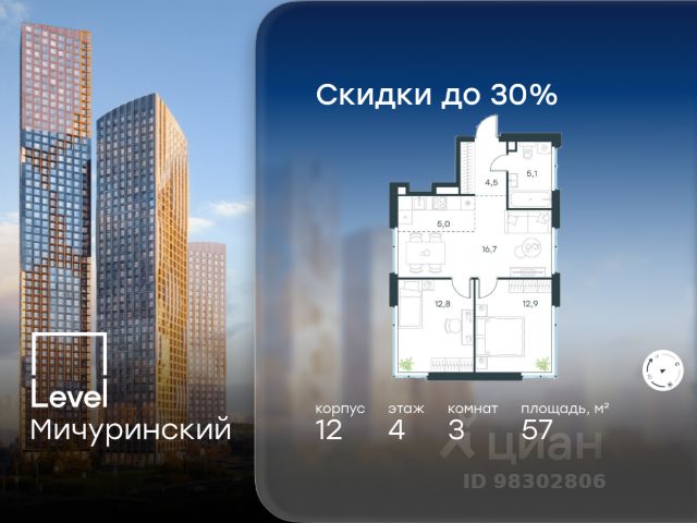 Продаётся 3-комн. квартира площадью 69,6 кв.м на 4 этаже 32 этажного дома (Корпус 4.1, Секция 1) проекта ПИК Мичуринский парк. Светлый просторный подъезд на уровне земли, функциональная планировка, большие окна, c отделкой. "Мичуринский парк" расположен на западе Москвы, в районе Очаково-Матвеевское, в 7 минутах пешком от метро "Озёрная". Архитектурную концепцию корпусов 4.4 и 4.5 разработала российская студия KK ARCHSTUDIO. У каждого корпуса свой характер — его формируют уникальная форма зданий и пластика фасада. Динамичные складки эркеров образуют характерный геометрический рисунок, который поддерживают и дополняют архитектурные детали. В корпусах 4.4 и 4.5 открытые балконы разнообразных форм: прямоугольные, фигурные. Все балконы выходят в тихий внутренний двор-парк. В эркерной части обоих корпусов предусмотрены лоджии. У подъездов будет два выхода: на улицу и во двор-парк. В наших дворах мы установим столы и лавочки со встроенными зарядными устройствами. Не нужно будет возвращаться домой, чтобы зарядить смартфон или ноутбук: можно весь день работать на свежем воздухе. В лобби "Мичуринского парка" будет удобная зона ожидания, где можно встретить друзей, курьера или дождаться такси, а также гостевая туалетная комната со столиком для пеленания. На территории проекта предусмотрен подземный паркинг и кладовые с надежной системой вентиляции, пожаротушения и системой круглосуточного видеонаблюдения. Собственная инфраструктура проекта включает два детских сада и две школы. Также по соседству с жилым комплексом будет построен многофункциональный торгово-офисный комплекс Lakes. Вдоль всего "Мичуринского парка" будут проходить несколько пешеходных бульваров с местами для отдыха. Рядом с проектом несколько зелёных зон, которые прекрасно подойдут для отдыха и спорта на свежем воздухе. Жители "Мичуринского парка" смогут выбирать, куда отправиться на прогулку: в пешей доступности Очаковский парк, парк Школьников и парк Олимпийской деревни, а на автомобиле можно быстро добраться до Тропарёвского лесопарка и Мещерского парка. Вблизи "Мичуринского парка" расположены ведущие вузы: МИРЭА, МГИМО, РАНХиГС, Институт радиотехники и телекоммуникационных систем и Академия ФСБ. Артикул 1054201 (Застройщик ООО "СПЕЦИАЛИЗИРОВАННЫЙ ЗАСТРОЙЩИК "ОЗЁРНАЯ 44")