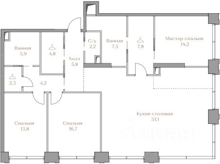 В историческом районе Хамовники продаются 3-к апартаменты площадью 131.30 кв.м, расположенные на 5 этаже делюкс-резиденции Саввинская 27. Преимущества: - 51 апартамент и 10 пентхаусов площадью 83-346 м2 с возможностью перепланировки и объединения; - все апартаменты с видом на Москву-реку; - бассейн 25 метров, тренажёрный зал, зал для занятий йогой и пилатесом; - бизнес-лаундж с отдельными переговорными; - детская комната с выходом во внутренний двор; - зимний сад; - библиотека с настоящим дровяным камином; - салон красоты и спа премиум-класса Mahash Spa; - подземный паркинг на 91 машино-место; - ресторан с летней террасой; - продуманное благоустройство на закрытой территории с охраной и видеонаблюдением, с детской площадкой и местом для тихого отдыха. Расположение и инфраструктура: Дом построен именно в Хамовниках неслучайно, ведь это стиль жизни, к которому вы привыкли: лучшие школы, спортивные секции, места для отдыха, прогулок и комфортная логистика до исторического центра или Москва-Сити. - 2 минуты до Садового кольца и 6 минут до ТТК на машине; - 11 минут пешком до "Лужники"; - 20 минут пешком до станции метро "Спортивная"; - в окружении более 15 детских садов, в том числе 9 частных; - в пешей доступности расположены 11 школ, 4 из которых входят в топ-20 школ Москвы по версии Forbes; - в окружении 5 парков, в том числе парк "Новодевичьи пруды", усадьба Трубецких, парк Горького. Отличная транспортная доступность: Еще одно преимущество резиденции - удобная транспортная доступность. Несмотря на близость к центру, путь на автомобиле до ТТК займет 2 минуты, до Садового кольца 5 минут. В пешей доступности находятся три станции метро: Спортивная, Фрунзенская и МЦК Лужники.