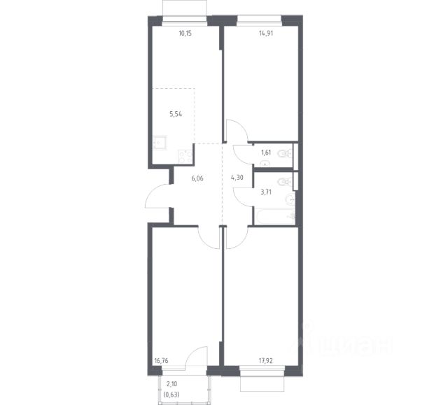 В продаже 2-комнатная квартира в корпусе 35 ЖК 'Новое Внуково'. Квартира располагается на 5 этаже, общая площадь 62.75 м2.