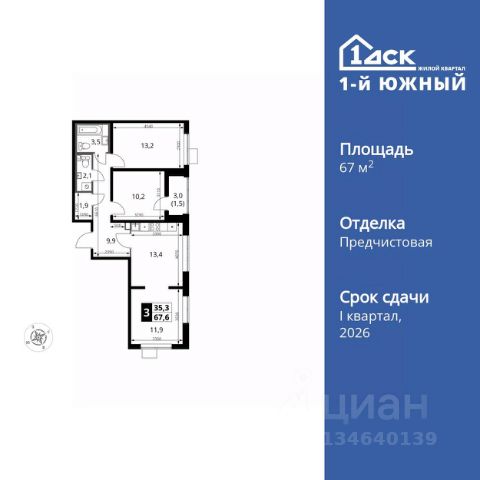 Прямая продажа от застройщика! Жилой Комплекс класса Комфорт Плюс. Продаётся 3-к квартира номер 211 общей площадью 67.6 кв.м. на 5-м этаже 25 этажного здания. Отделка Whitebox. Цена с учётом скидки. Особенности квартиры: - МЦД-5 в пешей доступности - Квартал с южным садом - Свои 3 детских сада и 2 большие школы - Угловая планировка - больше пространства для ваших идей. - Гостевой санузел - комфорт и удобство для ваших гостей. - Евроформат - просторное и удобное жилье с отличной планировкой. - Просторная мягкая зона - комфорт и уют для отдыха всей семьи. - Кухня-гостиная - идеальное пространство для встреч с близкими. - Возможность добавить спальное место - дополнительный комфорт для гостей. - Гардеробная - удобство для хранения и организации вещей. - Ниша под шкаф - компактное и удобное место для вещей. - Лоджия - уютное место для отдыха и тишины. Квартира с предчистовой отделкой (White box). Вам не придется заниматься черновыми и трудоёмкими работы, а чистовую отделку и дизайн - сделайте на свой вкус. Информация о комплексе: Одно из преимуществ проектов 1- ДСК большие застекленные лоджии. Другое преимущество честный евро-формат. Во всем проекте предусмотрена система Умный дом. В состав устанавливаемого пакета устройств входит: WiFi реле для управления группами потребителей, беспроводной кран перекрытия с эл. приводом, беспроводной сенсор протечки, Яндекс Станция Мини. Его расположение можно назвать удачным за счет транспортной доступности и близости к природным объектам. По соседству лес, а в каждом дворе плодовые деревья. Весной квартал окутывает бело-розовое облако: это цветут яблони, груши, сливы. К августу в воздух наполняется ароматом созревших плодов. Зимой среди покрытых инеем деревьев протянулась лыжня. Транспортная доступность: - Общественный транспорт: Действующая ж/д станция Булатниково (в перспективе будущая МДЦ D5) в пешей доступности, всего 10-12 минут. - Личный автотранспорт: Удобный выезд на трассу М4-Дон в сторону Москвы и области 850 м, до МКАД - 1 км Внутренняя инфраструктура: Красивые продуманные подъезды - еще одно преимущество проекта 1-й Южный. Вход в сквозные подъезды есть и с улицы, и со двора. Благодаря сплошному остеклению в них всегда светло и уютно. Подъезды расположены на уровне земли, поэтому и молодым родителям с коляской, и жильцам с ограниченными возможностями вход и выход неудобств не доставят. В помещении предусмотрено место под стойку ресепшен с выводом инженерных сетей. Если жильцы решат на общем собрании, что необходим охранник или консьерж, организовать для них рабочее место можно быстро и с минимальными затратами. В подъездах предусмотрены уборные для детей и взрослых. Колясочные в каждом подъезде позволяют поддерживать порядок и чистоту на этажах. На случай прогулки с четвероногим питомцем в непогоду в подъездах устроены лапомойки. Во дворах и на общественных территориях 1-ого Южного столько всего интересного для юных обитателей. Собственные 3 детских сада и