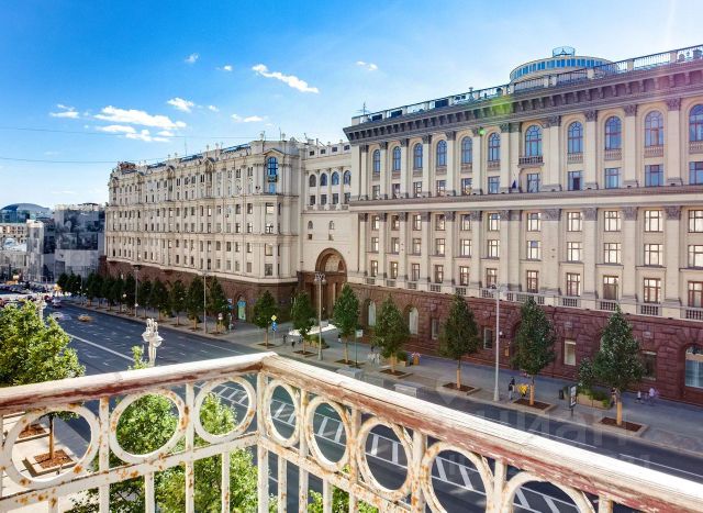 Лучшее предложение в доме! Продаётся видовая трёхкомнатная квартира по Тверской улице 700 м от Кремля. Расположена на 5 этаже 6-ти этажного дома, построенного по проекту архитектора А.Г. Мордвинова и инженера П.А. Красильникова, награжденных за свой проект сталинской премией.