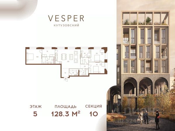 Продается квартира 3-спальнями без отделки, в корпусе 9.1 общей площадью 132.8 кв.м. на 5 этаже. Знаковый проект для ценителей комфортной городской среды от Vesper. Квартал площадью 3,7 га расположен на Кутузовском проспекте и воплощает новую концепцию идеально сбалансированного места для жизни. Благодаря удачному расположению и развитой транспортной инфраструктуре отсюда одинаково быстро добираться как до Кремля и ММДЦ "Москва-Сити", так и до Рублево-Успенского шоссе. Планировочные решения проекта Vesper Кутузовский включают широкую линейку жилых форматов и подойдут для самых взыскательных резидентов: помимо базовых вариантов квартир доступны эксклюзивные лоты — пентхаусы с террасами и квартиры с патио. Продуманная приватная инфраструктура, собственный ландшафтный парк, близость магазинов и ресторанов делают Vesper Кутузовский достойным выбором для самых взыскательных клиентов: как для тех, кто любит уединение, так и для резидентов, которые стремятся быть в центре событий. Концепция жилого квартала разработана ODA Architecture. Разная высотность 10 строений, плавные линии и главный паттерн из арок, размер которых меняется в зависимости от дома и этажа, создают визуальный ритм квартала и делают его легким и элегантным, наполненным солнечным светом и воздухом.