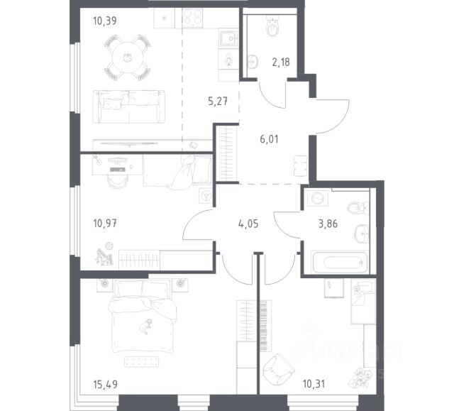Квартира с кухней-гостиной и тремя спальнями в Квартале Герцена. Особенности планировки: балкон, окна на две стороны, предчистовая отделка. Квартиру можно купить онлайн. В квартире выполнена отделка "под чистовую". Установлены окна с двойным стеклопакетом, радиаторы с терморегуляторами. На полу цементно-песчаная стяжка. В квартиры заведены кабели для интернета и ТВ. Входная сейф-дверь не требует замены. Организован поквартирный учёт энергоресурсов (водоснабжение, отопление, электричество). Квартал "Герцена" расположен в Бирюлёве Восточном — районе на юге Москвы. Дорога до ТТК займет всего полчаса на автомобиле, до станции метро и ж/д станции "Царицыно" — 13 минут, а до автовокзала "Южные ворота" — 20 минут. До автобусных остановок можно дойти пешком. В 2027-2028 году откроется новая станция метро "Лебедянская", дорога до неё займет всего 18 минут. Общая площадь "Квартала Герцена" составляет 27,3 га. Дома состоят из разноуровневых секций высотой от 6 до 55 этажей с видовыми террасами и балконами. На территории квартала будет построена поликлиника, детский сад на 350 мест и воспитательно-образовательный комплекс на 1075 мест, а также рестораны, клиники, магазины и салоны красоты. Объявление от застройщика. Ипотека, материнский капитал. Обмен — один из способов покупки. Обмен подойдёт, если вы хотите быстро поменять старую квартиру на новую. Получить ипотеку или рассрочку, а также обменять квартиру можно онлайн. Запишитесь на онлайн-презентацию по телефону или на сайте. квартиры в нашей базе: ГРЦ01.2-Ж4.5.14.