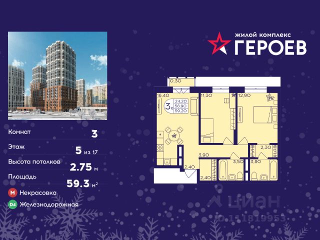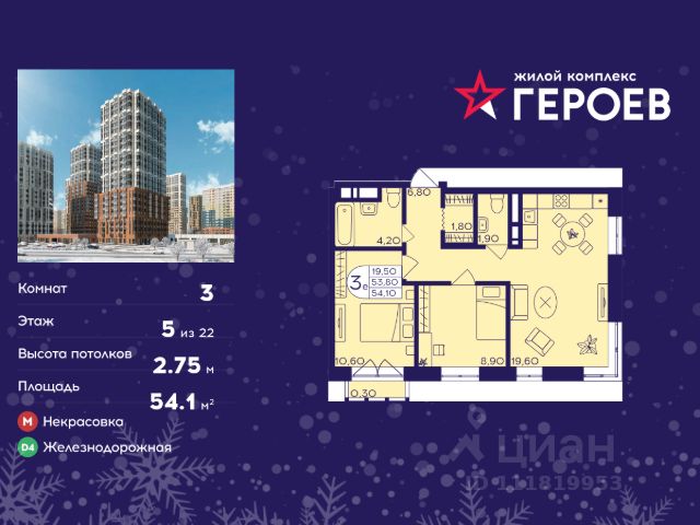 Продаётся 3-комнатная квартира в формате евро 52.70 кв. м. в жилом комплексе "Героев" в Балашихе, Железнодорожный. Квартира расположена на 5 этаже 410 корпуса. В наличии квартиры с отделкой. Всего 40 минут до центра Москвы. При покупке квартиры в сданном доме ключи выдаются сразу! Жилой квартал "Героев" - это уютный проект для семей с детьми. В квартале созданы все условия для досуга всех возрастов: игровые и спортивные площадки, места для отдыха и прогулочные зоны. За 15 минут можно дойти от дома до Ольгинского лесопарка, популярного места для отдыха на свежем воздухе. На территории жилого комплекса уже открыт детский сад на 250 мест и началось строительство еще одного - для 220 малышей, а также школы для 1320 учеников. Рядом работают магазины, кафе, супермаркеты, пункты выдачи. Преимущества: • В уютных светлых квартирах с просторными кухнями-гостиными удобно встречать гостей и проводить время наедине друг с другом. • Благодаря увеличенному остеклению в комнатах много света. • Квартиры продаются с отделкой, можно заселяться сразу после получения ключей.