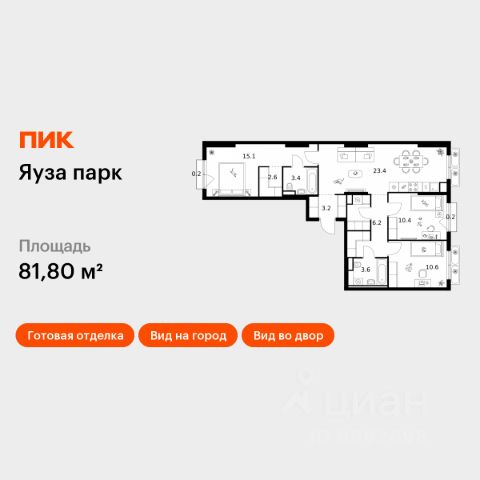 Продаётся 3-комн. квартира площадью 81,8 кв.м на 5 этаже 15 этажного дома (Корпус 13, Секция 3) проекта ПИК Яуза парк. Светлый просторный подъезд на уровне земли, функциональная планировка, большие окна, c отделкой. Жилой квартал "Яуза парк" возводится в Мытищах, в 5 минутах ходьбы от одноимённой ж/д станции. Проект включает 20 домов разной этажности с благоустроенными дворами-парками. Сейчас в квартале началось строительство новых корпусов 7-12. Это отличная возможность купить квартиру по стартовой цене. Индивидуальный дизайн фасадов разработали архитектурные бюро KATARSIS и RHIZOME. Вблизи жилого квартала появятся шумопоглощающие экраны, позволяющие забыть о том, что неподалёку находятся железнодорожные пути. На первых этажах домов откроются магазины, кафе, салоны красоты и другие полезные сервисы. Рядом есть школы и детские сады, магазины и ТРЦ "Красный кит". На территории проекта появится благоустроенная набережная реки Яузы и пешеходный бульвар для прогулок всей семьёй. Водонапорную башню XIX века, расположенную на территории "Яуза парка", мы реставрируем и создадим вокруг неё общественное пространство для отдыха жителей квартала. Для прогулок отлично подойдёт Мытищинский центральный парк культуры и отдыха, расположенный в 10 минутах ходьбы, и Лосиный остров — в 24 минутах. Дорога на автомобиле до Ярославского шоссе займёт не более 3 минут, до МКАД — 10 минут. Артикул 1057697 (Застройщик ООО "Специализированный "НМ-Консалт")