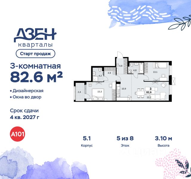 Продаётся 3-комн. квартира площадью 76,5 кв.м на 5 этаже 16 этажного дома (Корпус 2.6/1.4, Секция 4) проекта ПИК Бунинская набережная. Светлый просторный подъезд на уровне земли, функциональная планировка, большие окна, c отделкой. Удобное расположение: 18 минут пешком от м. "Потапово" и 12 минут на автомобиле до станции "Бунинская аллея". 12 минут на автомобиле до трассы Солнцево — Бутово — Варшавское шоссе. 20 минут на автомобиле до МКАД и Калужского шоссе. 1520 минут езды до живописных парков: "Бутовский лесопарк", заказник "Южное Бутово". Особенности проекта Камерный квартал в Новой Москве, на берегу Ивановского пруда. Одна из ключевых особенностей проекта — квартиры с панорамным видом на воду. Архитекторы вдохновились локацией проекта: природные оттенки и активная пластика корпусов напоминают рельефные выступы на берегу, а окна отражают водную гладь, визуально объединяя дома с природой. Преимущества проекта Светлые и просторные лобби с зонами ожидания. Подземный паркинг. Набережная и пешеходная аллея для прогулок. Парк на склоне с игровой зоной. Готовая инфраструктура района: 3 школы, 6 детских садов, взрослая и детская поликлиники. Артикул 969024
