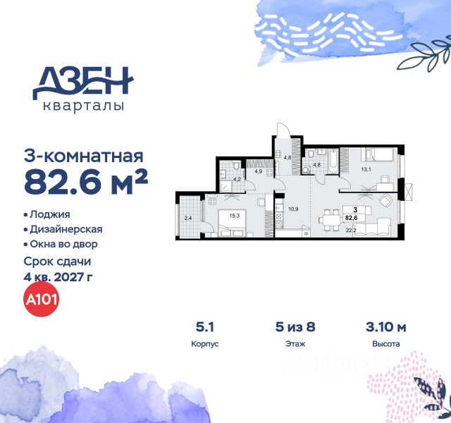 Строим кварталы для жизни с заботой о будущем. Предлагается 3-комнатная квартира комфорт-класса площадью 97,93 кв.м в корпусе 13 на 5-м этаже, в жилом комплексе "Эко Бунино". Застройщик сдает квартиры с отделкой в нескольких вариантах: предчистовая, готовая, улучшенная или вариант без нее. Последний подойдет тем, кто хочет создать свой уникальный интерьер и ничем себя не ограничивать. А если не хочется тратить время на ремонт, можно выбрать опцию — с отделкой. Перед тем как отдать ключи, застройщик установит натяжные потолки, поклеит обои под покраску, положит ламинат светлых тонов, а в санузлах — керамическую плитку и керамогранит. Приобрести квартиру возможно по специальным акциям от застройщика, с текущими условиями акций можно ознакомиться в блоке "Акций". Цена динамическая и может отличаться, уточняйте актуальность у застройщика. "Эко Бунино" — жилой комплекс в Новой Москве, полностью готовый для жизни. Уже построены школа и детские сады, открыты ледовая арена и магазины. Рядом — 2 станции метро и 3 лесопарка для прогулок. До станции метро "Новомосковская" — 20 минут пешком по экотропе. Во дворах-парках, закрытых от машин, комфортно и безопасно гулять. Здесь высажены уже взрослые деревья, которые создают прохладную тень в жаркий день. Ребенок любого возраста найдет увлекательное занятие в уже готовом плейхабе с большой горкой в виде слона и уникальным игровым оборудованием. Пока дети играют, родители могут прогуляться по бульвару или отдохнуть под навесом из растений. "Эко Бунино" — это 19 монолитных домов переменной этажности. Для облицовки используется навесной вентилируемый фасад и клинкерная плитка, которая имитирует кирпич. Переменная этажность обеспечивает хорошую инсоляцию дворов: в солнечные дни на территории особенно приятно гулять.