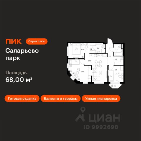 Продаётся 3-комн. квартира площадью 74,5 кв.м на 5 этаже 17 этажного дома (Корпус 20, Секция 1) проекта ПИК Саларьево парк. Светлый просторный подъезд на уровне земли, функциональная планировка, большие окна, c отделкой. Жилой район "Саларьево парк" расположен в Новой Москве, в четырёх километрах от МКАД по Киевскому шоссе. Две станции метро: "Саларьево" и "Филатов луг", — находятся в пешей доступности от проекта. Дойти до них можно за 510 минут. В квартале уже создана качественная среда, где есть абсолютно всё для полноценной жизни, работы и отдыха. Благодаря удобному расположению проекта всё важное будет рядом: детские сады, школы, кафе и рестораны, шопинг в торговых центрах, фитнес и даже аэропорт. Все корпуса в квартале гармонично сочетаются, образуя единую городскую среду. Между собой их объединяет невысокая этажность и натуральная цветовая гамма. Здесь приятно гулять и проводить время на улице всей семьёй. В "Саларьево парке" создана уникальная образовательная среда, включающая в себя шесть школ, рассчитанных на 6 250 учеников. Две из них уже открыты, их посещает 2 300 детей. Также на территории "Саларьево парка" находится 12 детских садов, один из которых с бассейном. Сейчас уже открыты 7 садов. В "Саларьево парке" открыта уникальная игровая площадка — PlayHub "Оригами". Здесь есть ручей, горка-труба и рельефные холмы. Взрослые смогут отдохнуть в уютном кафе, пока дети играют. Также на территории проекта есть SportHub — большая спортивная зона, разделённая по интересам и возрастам. Здесь можно заниматься разными видами спорта: футболом, баскетболом, волейболом и стритболом. Зимой центральную часть площадки превращают в каток. Во дворах-парках жилого квартала есть места для отдыха, детские и спортивные площадки. На первых этажах домов расположены магазины, кафе и полезные сервисы. Также вблизи проекта есть несколько масштабных торговых центров. До ТЦ "Саларис" пять минут пешком, до "Рио", Metro Cash & Carry и "Леруа Мерлен" — пять минут на автомобиле. Артикул 946663 (Застройщик ООО "Специализированный Застройщик "Тирон")