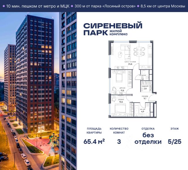Продаётся просторная 3-комнатная квартира общей площадью 71.3 м² на 5 этаже в новом жилом комплексе "Сиреневый парк", расположенном в Восточном административном округе Москвы на улице Тагильская. Всего 10 минут ходьбы от станции метро "Бульвар Рокоссовского" и одноимённой платформы МЦК. Высококачественное монолитное строительство гарантирует сохранение тепла в доме, а наличие квартир с предчистовой и чистовой отделкой позволяет вам сэкономить время и сразу же переехать в свое жилье после покупки. Благодаря разнообразию планировок вы сможете выбрать идеальный вариант, соответствующий вашим предпочтениям и образу жизни. Предлагаются квартиры: - с просторными кухнями-гостиными, - с нишами для хранения вещей и отдельными гардеробными, - мастер-спальни с собственными санузлами, - большие комнаты с высокими потолками (2,9 м) и с увеличенными безопасными окнами (1,95 м) , которые наполнят ваш дом естественным светом; - с чистовой отделкой по двум дизайн-проектам на выбор; - с остекленными лоджиями и панорамными видами на лес. Каждая деталь в этом доме создана для вашего комфорта: - безбарьерная среда, - бесшумные скоростные лифты, - машиноместа в отапливаемом подземном паркинге и кладовые на -1 этаже с доступом из лифта, - развитая инфраструктура с супермаркетами, кафе, фитнес-клубами, салонами красоты и частным детским садом обеспечивает максимальное удобство жителям. В 300 метрах от ЖК расположен Национальный парк "Лосиный остров". Способы покупки: 100%, Trade-in, Семейная ипотека без наценки, стандартная ипотека. Запишитесь на просмотр в офис продаж и получите свою персональную скидку по акции Назови свою скидку. ЖК "Сиреневый парк" — гармония в деталях, совершенство в каждом моменте. Застройщик проекта - AFI Development.