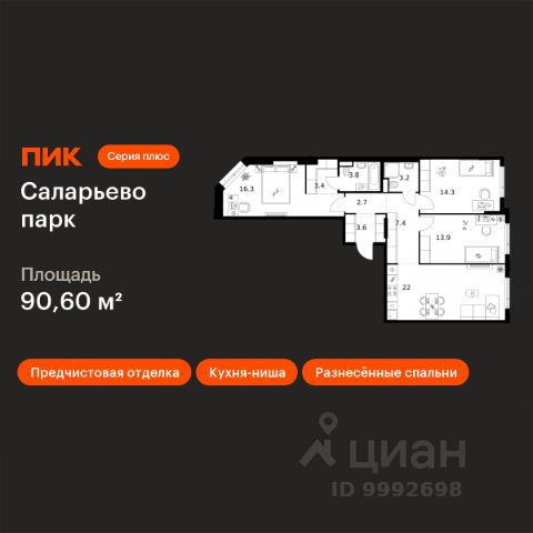Строим кварталы для жизни с заботой о будущем. Предлагаются 3-комнатные апартаменты бизнес-класса площадью 69,27 кв.м в корпусе 2.2 на 5-м этаже, в жилом комплексе "Тропарево Парк". Проект строится полностью с отделкой, которая включает ламинат, обои под покраску, натяжной потолок. Установлены двойные стеклопакеты увеличенного формата до 180 см, которые не только сохраняют тепло в доме, но и пропускают много солнца, делая комнаты светлее. Стены в ванной и санузлах отделаны керамогранитом под мрамор, установлена вся нужная сантехника. Для стиральной машины уже предусмотрено место. Прописка не предусмотрена в рамках юридического статуса - апартаменты. Приобрести апартаменты возможно по специальным акциям от застройщика, с текущими условиями акций можно ознакомиться в блоке "Акций". Цена динамическая и может отличаться, уточняйте актуальность у застройщика. "Тропарево Парк" — комплекс апартаментов бизнес-класса рядом с Ленинским проспектом, в Новой Москве. Находится всего в 10 минутах пешком от станции метро "Румянцево". Включает 7 жилых корпусов высотой от 16 до 23 этажей, приватные дворы-сады, обширную зеленую территорию с общественными пространствами. Из части апартаментов открываются виды на Тропаревский лесопарк, расположенный рядом.