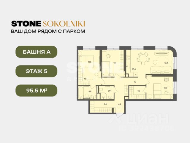 Старт продаж квартир в ЖК STONE SOKOLNIKI от девелопера STONE. В продаже просторная двуспальная квартира с кухней-гостиной и двумя спальнями для реализации любого дизайн-решения, идеально подходящая молодым парам, которые только планируют пополнение, а также небольшим семьям, где малыш уже подрастает. Современная архитектура проекта органично вписана в городскую среду. Концепция проекта разработана архитектурным бюро WALL Проект состоит из трех разновысотных башен высотой в 33, 28 и 24 этажа с чистой геометрией и увеличенной площадью остекления, которая позволит насладиться городской панорамой и видами на парк "Сокольники". Транспортная доступность - 10 мин. пешком до метро и БКЛ "Сокольники" и "Электрозаводская" - 12 мин. пешком до парка Сокольники - 10 мин. пешком до станции МЦД-3 "Митьково", которая позволит комфортно добираться в центр города и за его пределы Инфраструктура: В каждой входной группе предусмотрены помещения для временного хранения велосипедов, лапомойка, гостевой санузел, а также комната матери и ребенка. А колясочные появятся на каждом этаже - ведь это самое удобное решение для детей и их родителей. Планировочные решения: Планировки квартир в STONE Sokolniki создавались с учетом разнообразия современных сценариев жизни в городе. В проекте предусмотрены просторные кухни-гостиные, изолированные спальни с мастер-блоком, планировки для семей со взрослыми детьми, с двумя детьми разных возрастов. Благодаря грамотному зонированию квартир можно насладиться и временем с семьей, и уединением или, наоборот, устроить вечеринку вместе с друзьями. - Квартиры от 28 до 135 кв. м. Детский сад во дворе дома: Девелопер STONE осуществляет самостоятельный поиск оператора для детского сада, так как курирует наполнение проекта. На этапе финальной готовности будет выбран лучший оператор, отвечающий запросам качества и цены. Во всех своих проектах девелопер берет на себя ответственность за сдачу части помещений. Удобное хранение: В проекте STONE Sokolniki предусмотрена максимальная обеспеченность кладовыми. Хранения велосипедов в подземном паркинге возможно в зимний период, а летом будет организовано временное хранение на улице. Колясочные есть на каждом этаже всех трех жилых башен. - Колясочные на этаже - Кладовые для хранения Безопасная собственная территория дома, сим и паркинг: Внутри двора комфортно перемещаться пешком, все въезды в паркинг организованы по внешнему периметру. Велосипеды, самокаты и электросамокаты, детские беговелы и коляски - в приоритете, для всех колесных видов транспорта продуманы удобные маршруты движения и варианты хранения в разные сезоны. STONE - девелопер коммерческой и жилой недвижимости классов бизнес и премиум в Москве с 19-летним опытом. С 2022 года занимает лидирующую позицию на офисном рынке (рейтинг РБК). Сегодня в портфеле девелопера представлено 3 млн кв. м построенных, строящихся и проектируемых объектов, из которых более 1 млн кв. м находятся в стадии строительства. Компания имеет самый масштабный пр