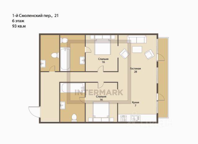 Апартаменты с двумя спальнями общей площадью 92 м² в комплексе Smolensky De Luxe. Выполнен ремонт в классическом стиле. Интерьер выдержан в цветах благородного дерева с мягкими акцентами бирюзы. В отделке использована натуральная древесина и камень. Полы выложены мрамором и тёмным паркетом. Кессонные потолки с резными узорами и золотистыми подвесными люстрами с декором из стекла. Планировка: кухня-гостиная, две спальни со своими ванными комнатами и встроенными гардеробными шкафами, гостевой санузел, балкон и холл. Установлена мягкая мебель, в гостиной большой угловой диван, обеденный стол на четыре персоны. Кухня оборудована встроенной бытовой техникой. С балкона открывается вид на Никольскую церковь в сторону Садового кольца и Нового Арбата. В стоимость входит машино-место в подземном паркинге. Главное о доме. Клубный дом на семь этажей с четырьмя секциями и приватным внутренним пространством. Архитектуру создало бюро "Остоженка"; фасады одеты в натуральный юрский камень с тонкой художественной резьбой. Проект — финалист Urban Awards две тысячи двенадцатого года. Внутри — лобби со светлым камнем и деревом, охрана и консьерж, закрытая территория и подземный паркинг примерно на четыреста машин. В фонде — около девяноста квартир, встречаются зимние сады и балконные галереи; потолки от трёх с третью до четырёх с лишним метров. Дом задуман для жизни на свету и в тишине переулков: большие окна, аккуратный двор, размеренный ритм центра за воротами. Главное о локации. Арбат живётся пешком. Здесь утро начинается на Старом Арбате с кофе и витрин, днём идут на выставки и камерные спектакли, вечером — к огням набережной Москвы-реки. Рядом городская классика: Смоленский пассаж и Lotte Plaza с ресторанами, галереями и магазинами, силуэт здания Министерства иностранных дел и желто-красный храм Святителя Николая на Щепах — тот самый, что видно из окон верхних этажей. Дом стоит в тихом переулке в двух шагах от воды и пешеходной улицы — редкое сочетание центра, истории и приватности. Комментарий эксперта. Меня зовут Егор Мясоедов — брокер компании Whitewill. Я отвечаю за продажу этого лота. Свяжитесь со мной, чтобы получить расширенную презентацию, больше фотографий или договориться о просмотре. Могу провести экскурсию по локации и познакомить вас с этим домом. ID 310 655.