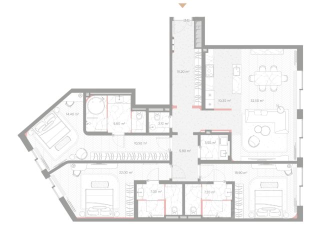 Пентхаус 30 "Большая Дмитровка IX" проект реставрации объекта культурного наследия и новое строительство двух особняков. На закрытой территории расположены особняки с резиденциями класса deluxe, вертикальный лес и 3-уровневый подземный паркинг. Предлагается пентхаус с двумя спальнями на шестом этаже. Площадь двухуровневого пентхауса составляет почти 200 кв. м. Пространство разделено на две зоны: для приема гостей и приватную — хозяйскую. В приватной зоне расположены две просторные спальни площадью 55 и 30 кв. м. К ним примыкает отреставрированный исторический балкон, с которого открывается живописный вид на уютную улицу Большую Дмитровку. Гостевая зона начинается со столовой-гостиной площадью 50 кв. м и продолжается исключительным бонусом для Москвы — настоящим итальянским бельведером с собственным патио. Второй уровень пентхауса — это открытая терраса на крыше дома. Отделка осуществляется с применением натуральных материалов: мрамора и ценных пород дерева. Подобраны элегантные детали интерьера и мягкая мебель. На кухне встроена бытовая техника Miele и кухонные модули Rossana. Стены и пол ванных комнат выложены мрамором Pietra Grey, установлен санфаянс Villeroy&Boch и Gessi. Пентхаус находится в особняке "История" это реставрация доходного дома 1903 года проекта Адольфа Эрихсона. Элегантность фасада соответствует эстетике модерна и дополнена уникальным декором — стилизованными барельефами древнеегипетских мастаба и масками египетских фараонов. Дом был бережно реконструирован и сохранил исторический облик. Лобби это роскошная парадная галерея, украшенная мрамором и лепниной. В доме интегрированы современные инженерные системы: приточно-вытяжная вентиляции с подготовкой и увлажнением воздуха, система центрального кондиционирования с индивидуальными фанкойлами, индивидуальный тепловой пункт, системы очистки воды. В ванных комнатах и постирочных предусматривается устройство электрического теплого пола.
