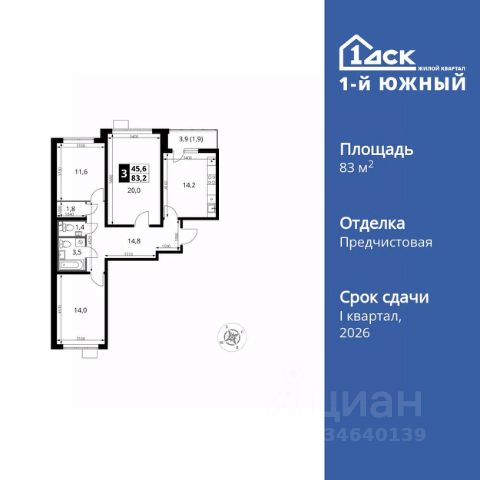 Прямая продажа от застройщика! Жилой Комплекс класса Комфорт Плюс. Продаётся 3-к квартира номер 221 общей площадью 83.2 кв.м. на 6-м этаже 25 этажного здания. Отделка Whitebox. Цена с учётом скидки. Особенности квартиры: - МЦД-5 в пешей доступности - Квартал с южным садом - Свои 3 детских сада и 2 большие школы - Просторная спальня, в которой можно разместить большую кровать. - Распашная планировка - отличное сочетание удобства и свободы. - Гостевой санузел - комфорт и удобство для ваших гостей. - Просторная кухня - место для семейных ужинов и кулинарных экспериментов. - Просторная мягкая зона - комфорт и уют для отдыха всей семьи. - Возможность добавить спальное место - дополнительный комфорт для гостей. - Гардеробная - удобство для хранения и организации вещей. - Ниша под шкаф - компактное и удобное место для вещей. - Лоджия - уютное место для отдыха и тишины. Квартира с предчистовой отделкой (White box). Вам не придется заниматься черновыми и трудоёмкими работы, а чистовую отделку и дизайн - сделайте на свой вкус. Информация о комплексе: Одно из преимуществ проектов 1- ДСК большие застекленные лоджии. Другое преимущество честный евро-формат. Во всем проекте предусмотрена система Умный дом. В состав устанавливаемого пакета устройств входит: WiFi реле для управления группами потребителей, беспроводной кран перекрытия с эл. приводом, беспроводной сенсор протечки, Яндекс Станция Мини. Его расположение можно назвать удачным за счет транспортной доступности и близости к природным объектам. По соседству лес, а в каждом дворе плодовые деревья. Весной квартал окутывает бело-розовое облако: это цветут яблони, груши, сливы. К августу в воздух наполняется ароматом созревших плодов. Зимой среди покрытых инеем деревьев протянулась лыжня. Транспортная доступность: - Общественный транспорт: Действующая ж/д станция Булатниково (в перспективе будущая МДЦ D5) в пешей доступности, всего 10-12 минут. - Личный автотранспорт: Удобный выезд на трассу М4-Дон в сторону Москвы и области 850 м, до МКАД - 1 км Внутренняя инфраструктура: Красивые продуманные подъезды - еще одно преимущество проекта 1-й Южный. Вход в сквозные подъезды есть и с улицы, и со двора. Благодаря сплошному остеклению в них всегда светло и уютно. Подъезды расположены на уровне земли, поэтому и молодым родителям с коляской, и жильцам с ограниченными возможностями вход и выход неудобств не доставят. В помещении предусмотрено место под стойку ресепшен с выводом инженерных сетей. Если жильцы решат на общем собрании, что необходим охранник или консьерж, организовать для них рабочее место можно быстро и с минимальными затратами. В подъездах предусмотрены уборные для детей и взрослых. Колясочные в каждом подъезде позволяют поддерживать порядок и чистоту на этажах. На случай прогулки с четвероногим питомцем в непогоду в подъездах устроены лапомойки. Во дворах и на общественных территориях 1-ого Южного столько всего интересного для юных обитателей. Собственные 3