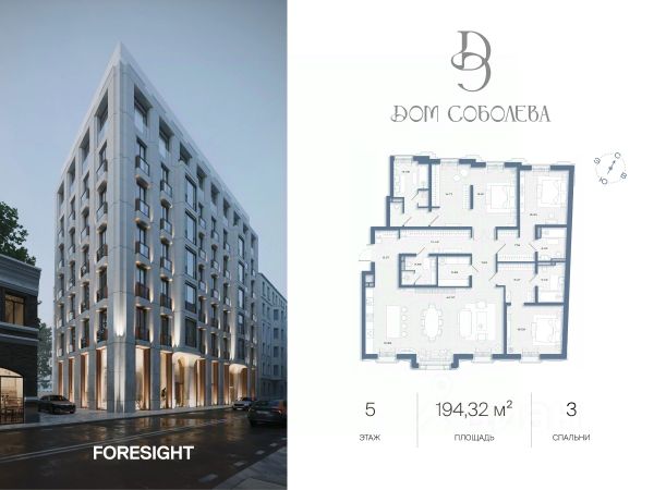Продаётся 3-комнатная квартира в строящемся доме (Корпус 1), срок сдачи: II-кв. 2028, общей площадью 194.32 кв.м., на 6 этаже. "Дом Соболева" - это камерный жилой комплекс класса deluxe, расположенный на тихой и уютной улице Машкова в самом сердце Москвы. Проект создавался с особой тщательностью, чтобы предоставить своим жителям уникальное пространство для жизни, в котором сочетаются эстетика архитектурного наследия и современные стандарты комфорта. Разработанный архитектурным бюро NOWADAYS, Дом воплощает современное прочтение стиля модерн, изысканно вписанного в историческую ткань района. Пространство комплекса создано для тех, кто ценит приватность, высокое качество жизни и индивидуальность. Всего 33 резиденции и 2 пентхауса делают Дом Соболева по-настоящему уникальным и камерным проектом, в котором каждый житель чувствует себя частью закрытого сообщества. В интерьере и экстерьере использованы только натуральные премиальные материалы - от камня в отделке фасадов до коллекционного искусства в лобби. Столь продуманное внимание к деталям превращает каждый день в эстетическое переживание. Расположение между Бульварным и Садовым кольцом дарит проекту стратегическое преимущество - сочетание тишины переулков Покровки с шаговой доступностью к культурным, гастрономическим и деловым локациям центра столицы. Здесь ритм мегаполиса уступает место тишине, а каждый момент наполнен ощущением покоя и защищённости. Дом Соболева - это пространство, в котором городская энергия трансформируется в ощущение настоящего дома.