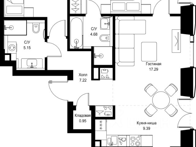 О квартире Продаётся 3-комнатная квартира общей площадью 89 кв.м. без отделки. Квартира расположена на 6 этаже корпуса 5.7 в жилом комплексе бизнес-класса "Среда на Лобачевского" в пешей доступности от метро "Аминьевская". О жилом комплексе "Среда на Лобачевского" полностью соответствует критериям современного жилого пространства. Взяв за основу рациональный подход, мы гармонично соединили дизайн, актуальные тренды и функциональность. Продуманный современный экстерьер и функциональные планировки внутри, приватные пространства и разнообразные досуговые зоны для каждого члена семьи — все это "Среда на Лобачевского". Инфраструктура Район отлично развит и наполнен жизнью, здесь уже есть вся необходимая инфраструктура — детские сады, школы, медучреждения, торговые центры, благоустроены парки для прогулок и отдыха, удобен и легкодоступен городской транспорт. Рядом расположены учебные корпуса крупных университетов — МГУ, МГИМО и РАНХиГС. Школы и детские сады в районе занимают высокие позиции в городских рейтингах, поэтому вам не придется беспокоиться о качестве образования детей. Как и об отдыхе: поблизости расположены живописные пруды, реки и парки. Это Парк Олимпийской деревни, Парк имени 50-летия Октября, Мещерский парк и Очаковские пруды. Теперь поставить галочки в еженедельном чек-листе "спорт-прогулки-встречи с друзьями" можно, не покидая любимый район. Особенности Особое внимание в проекте уделяется созданию функциональных пространств не только внутри дома, но и за его пределами. В ландшафтном парке "Среды на Лобачевского" расположены крытые зоны для спокойного времяпровождения, места для активного отдыха и спорта, коворкинг, соседский комьюнити-центр, водные объекты. —Ландшафтный парк во дворе. —Водный сад с зонами отдыха. —Зоны коворкинга. —Дизайнерские гранд-лобби. —Бесключевой доступ. —Подземный паркинг.