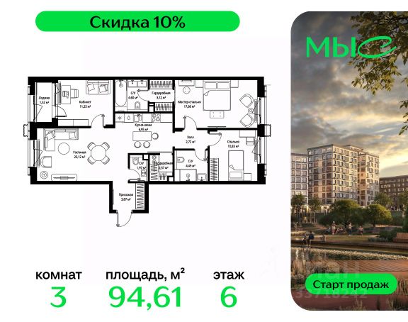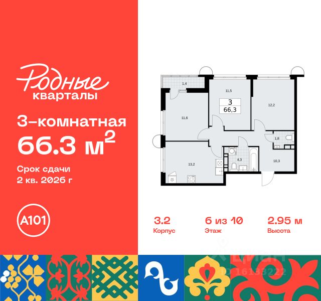 Указанная акционная стоимость доступна при 100% оплате или ипотеке без субсидирования. Цена действует до 06.10.2025 23:59:00. Стоимость без акции 13563668. Продаётся квартира с 3 комнатами общей площадью 63.20 кв. метров на 6 этаже жилого квартала комфорт-класса "Равновесие". Срок сдачи: 4 кв. 2026 На территории комплекса будет возведен детский сад на 360 мест, а на первых этажах жилых домов откроются кафе, магазины и все необходимое для удобства жителей. Локация "Равновесия" выделяется среди других пригородных ЖК разнообразием быстрых маршрутов до Москвы. Для автомобилистов преимуществом станут удобные выезды на Можайское шоссе, Рублёво-Успенское шоссе, Минское шоссе с платной трассой и другие. Также в пешей доступности находятся две ж/д станции — "Жаворонки" и "Здравница". Дорога на электропоезде до делового центра "Москва-Сити" составит всего 35 минут. Особенности ЖК: - Малоэтажная застройка: 4-6 этажей; - Благоустроенный пешеходный бульвар; - Пространства для отдыха и спорта; - Квартиры с террасами на последних этажах; - Квартиры с отдельным входом на первых этажах; - Внутренняя территория квартала свободна от машин; - Безбарьерная среда; - Помещения для хранения детских колясок и спортивного инвентаря.