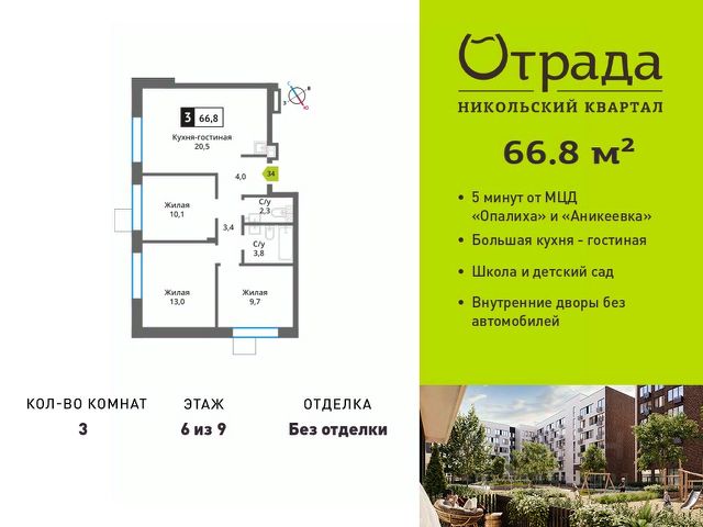 Квартира в клубном доме в Прайм квартале "Отрада на реке" на живописном берегу реки. Новый квартал расположится на берегу реки Синичка в 2 километрах от границ московского района Митино, при этом вдали от шумных магистралей. Проект отличается уникальной архитектурой и дизайном, а также возможностью наслаждаться прекрасным видом на реку и окружающую природу. Прайм квартал "Отрада на реке" это проект бизнес-класса, включающий клубный дом всего на 170 квартир и территорию, на которой расположатся двухэтажные дуплексы. Застройщик проекта - ООО СЗ "Отрада Девелопмент" входи в группу компаний "Отрада" и обладает высочайшим рейтингом надежности пять звезд по данным Единого реестра застройщиков. Все построенные Группой компаний "Отрада" объекты сданы раньше срока от нескольких месяцев до года".