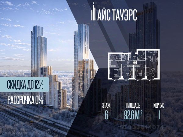 Выгода 12%, беспроцентная рассрочка от застройщика. Продается 3-комнатная квартира на 6 этаже, 92.6 кв.м. площади в жилом комплексе "Айс Тауэрс", который расположен в Западном административном округе Москвы. Архитектура комплекса отличается панорамным остеклением фасадов. Квартиры продаются с опциональной отделкой white box. В комплексе установлены системы видеонаблюдения, климат-контроля (бризеры) и элементы системы "умный дом". Территория и расположение На придомовой закрытой территории обустроены детские площадки, зоны для воркаута и места для отдыха. Комплекс граничит с особо охраняемой природной зоной, что обеспечивает доступ к прогулочным маршрутам. Инфраструктура комплекса • Комьюнити-центр с универсальными залами, коворкингом и библиотекой. • Помещения для детских занятий и мастер-классов. • Предусмотрены кабинеты для приема специалистов (стилистов, массажистов). В комплексе работают круглосуточная консьерж-служба и служба доставки (внутри комплекса). Доступны услуги парковки (valet) и помощи с багажом (беллмены). Для повседневного удобства предусмотрены: • Колясочные и велосипедные хранилища. • Душевые для домашних животных и груминг. • Мобильное приложение для управления сервисами.