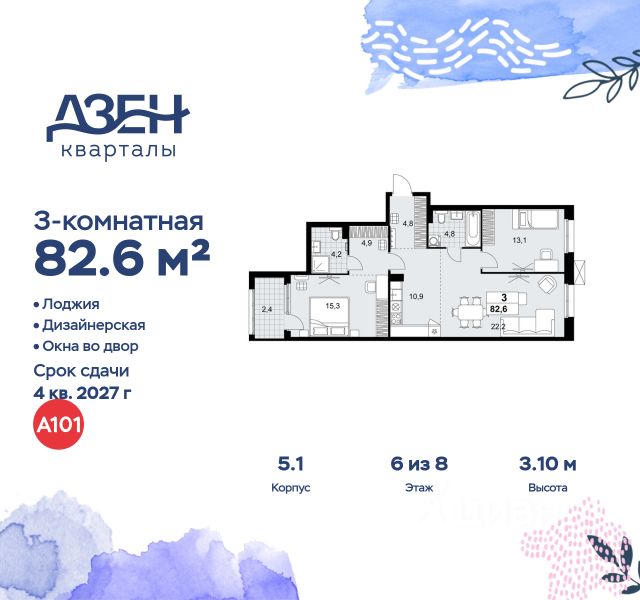 Продаётся 3-комн. квартира площадью 76,7 кв.м на 6 этаже 16 этажного дома (Корпус 2.6/1.4, Секция 4) проекта ПИК Бунинская набережная. Светлый просторный подъезд на уровне земли, функциональная планировка, большие окна, c отделкой. Удобное расположение: 18 минут пешком от м. "Потапово" и 12 минут на автомобиле до станции "Бунинская аллея". 12 минут на автомобиле до трассы Солнцево — Бутово — Варшавское шоссе. 20 минут на автомобиле до МКАД и Калужского шоссе. 1520 минут езды до живописных парков: "Бутовский лесопарк", заказник "Южное Бутово". Особенности проекта Камерный квартал в Новой Москве, на берегу Ивановского пруда. Одна из ключевых особенностей проекта — квартиры с панорамным видом на воду. Архитекторы вдохновились локацией проекта: природные оттенки и активная пластика корпусов напоминают рельефные выступы на берегу, а окна отражают водную гладь, визуально объединяя дома с природой. Преимущества проекта Светлые и просторные лобби с зонами ожидания. Подземный паркинг. Набережная и пешеходная аллея для прогулок. Парк на склоне с игровой зоной. Готовая инфраструктура района: 3 школы, 6 детских садов, взрослая и детская поликлиники. Артикул 969036 (Застройщик ООО СЗ "Стройком")
