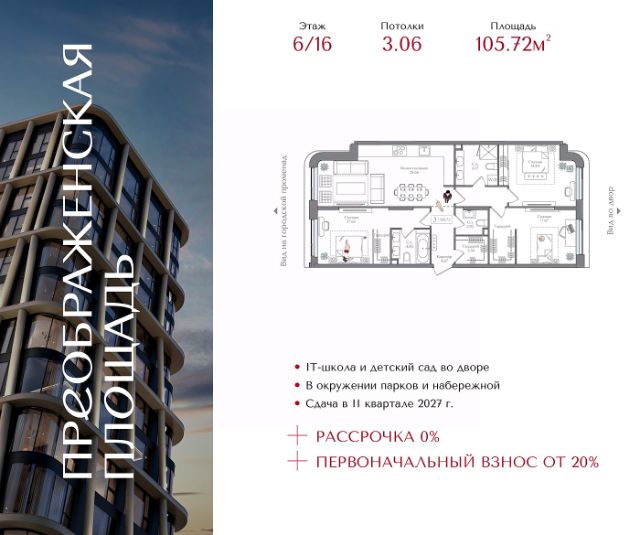 Жилой комплекс "Преображенская площадь" Премиум-класс | старт продаж долгожданных корпусов Открыт старт продаж нового объёма квартир в жилом комплексе "Преображенская площадь". В реализации — долгожданные корпуса проекта, а значит сейчас доступен лучший выбор планировок и наиболее привлекательные условия покупки. Комплекс расположен на первой линии от метро "Преображенская площадь" в историческом районе с развитой инфраструктурой. Удобный выезд позволяет добраться до ТТК всего за 7 минут, до Садового кольца — за 8 минут. Архитектура проекта продумана так, чтобы сохранить ощущение приватности: на каждом этаже расположено всего 35 квартир. Небольшое количество соседей создаёт комфортную, спокойную атмосферу проживания. Входные группы выполнены в формате гранд-лобби с камином, библиотекой и лаунж-зонами. В отделке используются натуральные материалы, формирующие стильное и статусное пространство. Закрытая территория площадью 1,5 га полностью свободна от автомобилей. Пространство двора организовано как ландшафтный парк с прогулочными маршрутами, зонами отдыха и спорта, а также гастропроменадом с кафе и ресторанами. Предусмотрен подземный паркинг с прямым доступом в жилые корпуса. В составе проекта — детский сад и IT-школа 1502 "Энергия", входящая в число лучших школ Москвы и России. Комплекс окружён крупными зелёными зонами: рядом расположены Сокольники, Измайловский и Черкизовский парки, национальный парк "Лосиный остров", ВДНХ и благоустроенная набережная Яузы. Доступна рассрочка 0% при первоначальном взносе от 20%. Старт продаж новых корпусов — возможность приобрести квартиру в премиальном проекте на самых выгодных условиях. Звоните для подробной консультации.