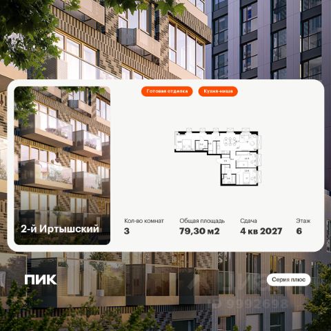 Продажа 3-комнатных квартир на 6 этаже рядом с метро Щёлковская