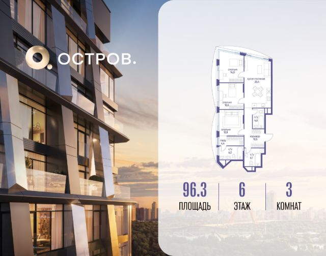 Продаётся трехкомнатная квартира от застройщика: общая площадь 98.40 м², жилая 53.10 м², кухня 18.70 м², 6, жилой квартал "Остров 7", корпус 4 (7 квартал) (секция 1). срок сдачи: 4-кв. 2025. , 2 санузла: 2 совмещенных. В жилой зоне 2 больших окна на одну сторону, хорошая инсоляция. Позвоните сейчас и забронируйте квартиру! Купите квартиру в доме у прибрежного парка, в квартале ОСТРОВ.7. Это семь корпусов премиум- и бизнес-класса в одном из лучших мест ОСТРОВА - между бульваром и парком, поблизости от реки. Стильные корпуса имеют узнаваемый вид благодаря бионической пластике фасадов, приподнятых над землей. Для жителей предусмотрены детский клуб, фитнес-рум, коворкинг, переговорные, лаунжи. На крышах устроены видовые общественные пространства с зонами для отдыха и спорта. Двор расположен на двух уровнях: нижний ландшафтный парк и верхняя городская терраса. ОСТРОВ.7 - часть жилого комплекса на западе Москвы, в 15 минутах езды от центра. Это настоящий заповедник посреди большого города, в окружении реки и 650 га заповедников. Здесь все необходимое находится по соседству: от детского сада до супермаркета, от фитнес-зала до серфинг-центра. На территории созданы все условия для отдыха и общения: клубная инфраструктура в домах и дворы-парки, набережные и променады, маршруты для спортсменов, детей и возрастных жителей. В нескольких минутах ходьбы расположена станция метро "Терехово" БКЛ. На автомобиле - 10 минут до Москва-Сити и 15 минут до Садового кольца.
