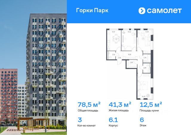Предлагается 3-комнатная квартира комфорт-класса 78,48 кв.м в корпусе 6.1 на 6 этаже, в ЖК "Горки Парк" Квартира с чистовой отделкой. Доступность дополнительных опций уточняйте у застройщика. Приобрести квартиру возможно по специальным акциям от застройщика, с текущими условиями акций можно ознакомиться в блоке "Акций". Цена динамическая и может отличаться, уточняйте актуальность у застройщика. Уединенный жилой комплекс, где хочется остаться. До МКАДа всего 10 минут на авто, а прямо рядом с домами есть лес — идеально для прогулок, занятий спортом и медитаций. Фасады 1117-этажных корпусов дополняют яркие вставки — каждый дом особенный. На территории проекта появятся ФОК и поликлиника, детские сады и школы. Наслаждаться счастливой жизнью в квартале можно уже сейчас — здесь есть готовые дома, но при этом появляются и новые корпуса. "Горки Парк" — это: 1. 10 минут на машине до МКАДа 2. 20 минут на машине до метро "Домодедовская" и 18 минут — до аэропорта Домодедово 3. Пешеходные бульвары и пространства для отдыха 4. Выход в лесопарк с благоустроенными экотропами 5. Приватные дворы без машин 6. Экомаршрут в Коробовском лесопарке рядом с домом, который соединит кварталы: "Пригород Лесное", "Горки Парк" и "Богдановский Лес" 7. Запланировано 3 школы и 6 детских садов 8. Уже построили детский сад и школу со спортивным ядром, где смогут тренироваться жители квартала 9. Поликлиника и спорткомплекс внутри проекта 10. Магазины и кофейни на первых этажах 11. Игровые площадки и воркаут-зона 12. Прогулочная зона рядом с кварталом 13. Спортивно-игровой кластер 14. Площадки для занятий йогой и игры в пинг-понг — в части дворов 15. Рабочий остров и площадка для отдыха — в части дворов 16. Веревочный панда-парк — в будущем 17. Площадка для выгула собак 18. Балконы с панорамным остеклением 19. Увеличенные окна в квартирах 20. Входы на уровне земли 21. Места для хранения велосипедов и колясок