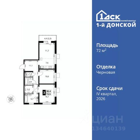 Прямая продажа от застройщика! Жилой Комплекс класса Комфорт Плюс. Продаётся 3-к квартира номер 283 общей площадью 72.5 кв.м. на 6-м этаже 24 этажного дома. Отделка Whitebox. Особенности квартиры: - МЦД-5 в пешей доступности - Квартал с собственной набережной - Свои 2 детских сада и школа - Мастер-зона с санузлом и гардеробной. Всё для вашего комфорта и удобства, включая личный санузел и гардероб. - Просторная спальня, в которой можно разместить большую кровать. - Распашная планировка - отличное сочетание удобства и свободы. - Окно в ванной - натуральное освещение для уюта и комфорта. - Гостевой санузел - комфорт и удобство для ваших гостей. - Раздельный санузел - больше удобства для всех членов семьи. - Евроформат - просторное и удобное жилье с отличной планировкой. - Кухня-гостиная - идеальное пространство для встреч с близкими. - Гардеробная - удобство для хранения и организации вещей. - Просторная лоджия - идеальное место для уютных вечеров. Квартира с предчистовой отделкой (White box). Вам не придется заниматься черновыми и трудоёмкими работы, а чистовую отделку и дизайн - сделайте на свой вкус. Информация о комплексе: Комплекс 1-й Донской расположен в 7 км от МКАД по трассе М-4 Дон. В нем сочетаются все плюсы комфортной городской среды и природного окружения. В проекте достаточно большой процент квартир, выходящих на 2-3 стороны света. Секции-маяки формируют у зданий визуальную L-форму, что придает застройке структуру и ритмику объемов. На ощущение динамики работает и разная этажность зданий. Теплая цветовая палитра фасадов отражает природу Дона. Вечерами дома преображаются благодаря архитектурной подсветке, выгодно выделяясь на городском фоне. Природа оказывает положительное влияние на человека на всех уровнях восприятия: через зрение, запахи, звуки, тактильные ощущения. Неподалеку от ЖК Первый Донской: Ермолинский парк, Видновский лесопарк, Жуковский парк Транспортная доступность: Комплекс удобно расположен в 7 км от МКАД по трассе М-4 Дон (через Видное). Расстояние до Каширского шоссе составляет 12 км. Добраться до метро и центра Москвы позволяет развитая сеть маршрутов общественного наземного транспорта. Действующая ж/д станция Калинина Павелецкого направления в 15-17 минутах ходьбы (МЦД-5 в 2025-2026 гг). Внутренняя инфраструктура: Проект 1-й Донской соседствует с бурно развивающимся районом, основная инфраструктура которого уже сложилась. В строительстве современных жилых комплексов в округе есть свои плюсы: здесь формируется продуманная и комфортная городская среда. Что касается внутренней инфраструктуры, на территории квартала будут расположены собственные муниципальные 2 детских садика и школа, которые помогут совместить приятное с полезным. Территория комплекса пронизана целой сетью живописных пешеходных маршрутов, позволяющих попасть в любой уголок района. Основные пути, как водится, "торговые". Они проходят вдоль магазинов, кафе и других представителей коммерции и отделяются от проез