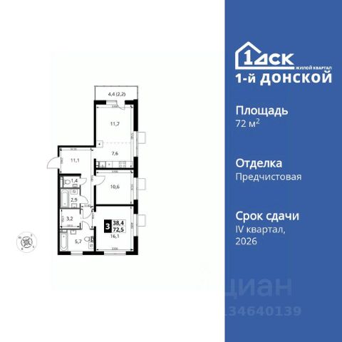 Прямая продажа от застройщика! Жилой Комплекс класса Комфорт Плюс. Продаётся 3-к квартира номер 283 общей площадью 72.5 кв.м. на 6-м этаже 24 этажного здания. Отделка Whitebox. Особенности квартиры: - МЦД-5 в пешей доступности - Квартал с собственной набережной - Свои 2 детских сада и школа - Мастер-зона с санузлом и гардеробной. Всё для вашего комфорта и удобства, включая личный санузел и гардероб. - Просторная спальня, в которой можно разместить большую кровать. - Распашная планировка - отличное сочетание удобства и свободы. - Окно в ванной - натуральное освещение для уюта и комфорта. - Гостевой санузел - комфорт и удобство для ваших гостей. - Раздельный санузел - больше удобства для всех членов семьи. - Евроформат - просторное и удобное жилье с отличной планировкой. - Кухня-гостиная - идеальное пространство для встреч с близкими. - Гардеробная - удобство для хранения и организации вещей. - Просторная лоджия - идеальное место для уютных вечеров. Квартира с предчистовой отделкой (White box). Вам не придется заниматься черновыми и трудоёмкими работы, а чистовую отделку и дизайн - сделайте на свой вкус. Информация о комплексе: Комплекс 1-й Донской расположен в 7 км от МКАД по трассе М-4 Дон. В нем сочетаются все плюсы комфортной городской среды и природного окружения. В проекте достаточно большой процент квартир, выходящих на 2-3 стороны света. Секции-маяки формируют у зданий визуальную L-форму, что придает застройке структуру и ритмику объемов. На ощущение динамики работает и разная этажность зданий. Теплая цветовая палитра фасадов отражает природу Дона. Вечерами дома преображаются благодаря архитектурной подсветке, выгодно выделяясь на городском фоне. Природа оказывает положительное влияние на человека на всех уровнях восприятия: через зрение, запахи, звуки, тактильные ощущения. Неподалеку от ЖК Первый Донской: Ермолинский парк, Видновский лесопарк, Жуковский парк Транспортная доступность: Комплекс удобно расположен в 7 км от МКАД по трассе М-4 Дон (через Видное). Расстояние до Каширского шоссе составляет 12 км. Добраться до метро и центра Москвы позволяет развитая сеть маршрутов общественного наземного транспорта. Действующая ж/д станция Калинина Павелецкого направления в 15-17 минутах ходьбы (МЦД-5 в 2025-2026 гг). Внутренняя инфраструктура: Проект 1-й Донской соседствует с бурно развивающимся районом, основная инфраструктура которого уже сложилась. В строительстве современных жилых комплексов в округе есть свои плюсы: здесь формируется продуманная и комфортная городская среда. Что касается внутренней инфраструктуры, на территории квартала будут расположены собственные муниципальные 2 детских садика и школа, которые помогут совместить приятное с полезным. Территория комплекса пронизана целой сетью живописных пешеходных маршрутов, позволяющих попасть в любой уголок района. Основные пути, как водится, "торговые". Они проходят вдоль магазинов, кафе и других представителей коммерции и отделяются от про