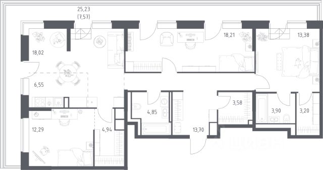 Продается просторная трехкомнатная квартира площадью 87,6 м² в башне "Гармония" клубного дома "Кутузов Сити". Функциональная планировка квартиры идеально подойдёт для семьи. В квартире три изолированные комнаты, одна из которых — мастер-спальня с балконом, ванной комнатой и гардеробной. Балкон станет отличной зоной для отдыха или работы на свежем воздухе в тёплое время года.Просторная кухня-гостиная станет идеальным местом для семейных ужинов и приёма гостей. В общей сложности, в квартире предусмотрено три санузла. Одно из этих помещений можно адаптировать под прачечную. В просторной прихожей предусмотрена гардеробная. Большие окна во всей квартире наполняют комнаты естественным светом и делают солнце частью интерьера. Высокие потолки придают пространству ощущение свободы и лёгкости. Продуманная планировка позволяет эффективно использовать каждый квадратный метр. О проекте: "Кутузов Сити" — клубный дом на 220 квартир, разработанный совместно с бюро Atrium и Oleg Klodt Architecture & Design. Проект строится в престижном Западном административном округе Москвы, всего в нескольких минутах ходьбы от Кутузовского проспекта. Закрытая территория, приватный двор, подземный паркинг и стильные лобби создают атмосферу комфорта и безопасности. В двух шагах от дома находится крупнейшая природная территория Москвы — природный заказник "Долина реки Сетунь". Камерная застройка и развитая инфраструктура делают "Кутузов Сити" отличным выбором для тех, кто ценит качество жизни и близость к природе. (Лот: 24)