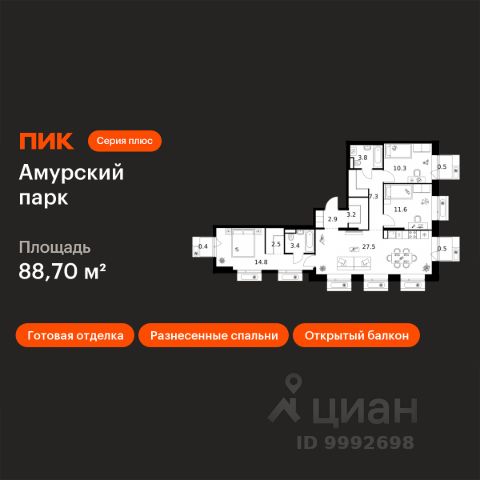 Продаётся 3-комн. квартира площадью 80,6 кв.м на 7 этаже 9 этажного дома (Корпус 1.6, Секция 6) проекта ПИК 2-й Иртышский. Светлый просторный подъезд на уровне земли, функциональная планировка, большие окна, c отделкой. "2-й Иртышский" возводится на востоке Москвы, между тремя станциями метро "Щелковская", "Черкизовская" и "Бульвар Рокоссовского". Проект включает жилые корпуса с индивидуальной архитектурой, школу и детский сад. Проект состоит из зданий разной высоты и разной по характеру архитектуры. Узнаваемой доминантой квартала станет башня из стекла и металла, напоминающая водопад. Квартал расположен в окружении нескольких знаковых рекреационных зон столицы. Вам понадобится всего несколько минут, чтобы оказаться в атмосфере спокойствия и слияния с природой. Всего 15 минут пешком, и вы в "Сиреневом саду", а дорога до национального парка "Лосиный остров" или Гольяновского пруда займёт 6 минут на авто. До Черкизовского детского парка и "Усадьбы Измайлово" можно доехать за 15 минут. До станции "Черкизовская" можно дойти пешком за 25 минут или доехать на общественном транспорте за 20. Дорога до станций "Бульвар Рокоссовского" и "Щёлковской" займёт 25 минут на общественном транспорте. Автомобилисты оценят удобные выезды на Щёлковское шоссе и СВХ. Путь до МКАД займет около 14 минут, до ТТК - 20. Артикул 988526