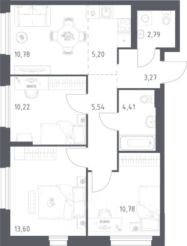В продаже 3-комнатная квартира в корпусе 28 ЖК 'Новое Внуково'. Квартира располагается на 7 этаже, общая площадь 78.54 м2.