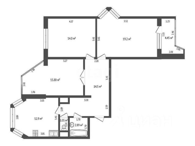 Две изолированные спальни + кухня-гостинная;