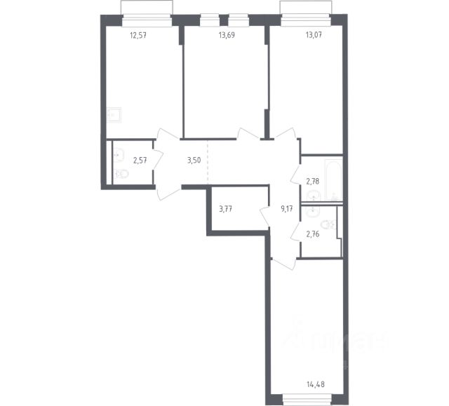 Продаётся 3-комнатная квартира 76, площадью 67,52 м², на 7 этаже в ЖК "Притяжение Сити" корпус 8. Стоимость — от 14310853 руб. Квартира без отделки, планировка угловая, окна во двор.