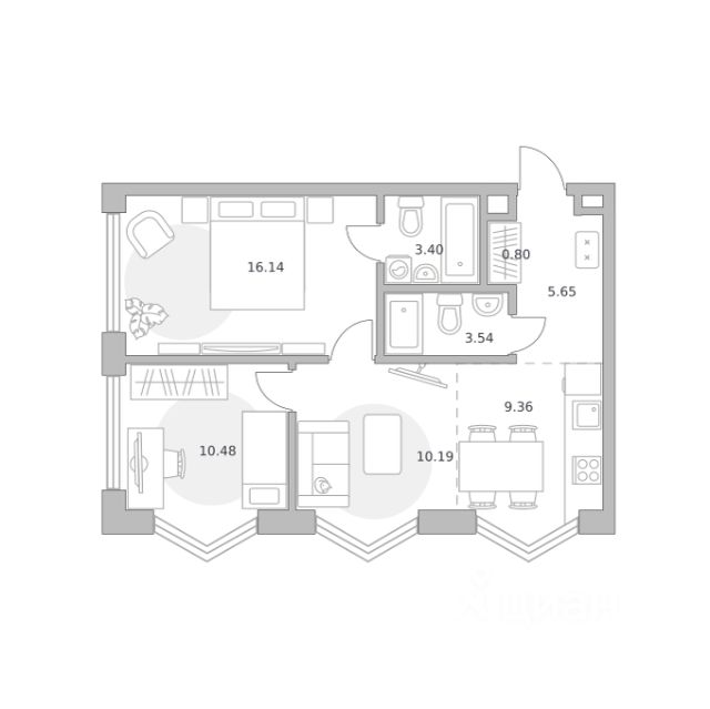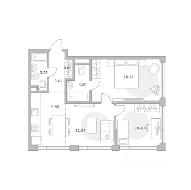 Продаётся 3-комнатная квартира 913, площадью 59,56 м², на 7 этаже в ЖК "Мнёвники от Гранель" корпус 1. Стоимость — от 33399072 руб. Квартира без отделки, планировка угловая, окна во двор.