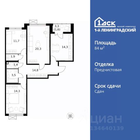 Прямая продажа от застройщика! Жилой Комплекс класса Комфорт Плюс. Продаётся 3-к квартира номер 128 общей площадью 84.1 кв.м. на 7-м этаже 14 этажного здания. Предчистовая отделка. Цена с учётом скидки. Особенности квартиры: - Организуем показ в удобное для вас время! - Просторная спальня, в которой можно разместить большую кровать. - Распашная планировка - отличное сочетание удобства и свободы. - Гостевой санузел - комфорт и удобство для ваших гостей. - Просторная кухня - место для семейных ужинов и кулинарных экспериментов. - Просторная мягкая зона - комфорт и уют для отдыха всей семьи. - Лоджия - уютное место для отдыха и тишины. - Панорамное остекление лоджии - открывает вид на окружающий мир. Квартира с предчистовой отделкой. Вам не придется заниматься черновыми и трудоёмкими работы, а чистовую отделку и дизайн - сделайте на свой вкус. Информация о комплексе: В концепции благоустройства гармонично сочетаются черты двух городов: прогулочные бульвары напоминают петербургские проспекты. Каждый элемент ЖК продуман для комфорта жителей, включая домашних питомцев. В каждой квартире - базовый пакет "Умная квартира" с защитой от протечек, голосовым управлением и возможностью расширения функций. Управляйте техникой из любой точки мира. Продуманная среда, технологии и забота о деталях создают пространство для жизни с безупречным комфортом. Транспортная доступность: 15 минут пешком до станции Молжаниново (Планерная), МЦД3. Всего в 7 км от МКАД по Ленинградскому шоссе, сразу после пересечения с Международным шоссе. Внутренняя инфраструктура: В квартале созданы уютные дворики для детских игр и отдыха взрослых. Детские зоны отделены от взрослых, а спортивные площадки вынесены за пределы дворов. Все зоны обустроены с использованием экологичных материалов, а игровое оборудование разработано с участием детских психологов. Для велосипедистов проложены дорожки к живописным прудам. На первых этажах зданий с внешней стороны комплекса расположены магазины, аптеки и кафе - всё необходимое для повседневной жизни в шаговой доступности. Идеальная среда для комфортного отдыха и активного досуга. Квартира с предчистовой отделкой - ваш дизайн без черновых работ