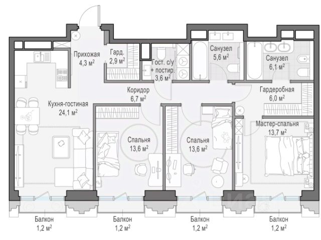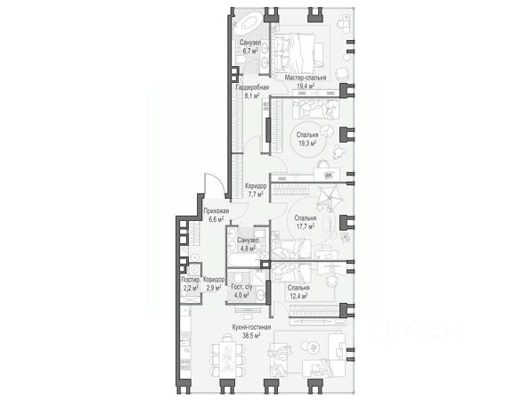 В продаже 3-комнатная квартира квартира в элитном квартале "Тишинский бульвар". Общая площадь квартиры - 107.40 кв.м. Этаж 7 из 14. Корпус К6. "Тишинский бульвар" - тихий зелёный элитный квартал на Тишинке, в престижном и комфортном районе центра Москвы. В нём создан уникальный для элитного дома прогулочный бульвар в своём огромном парке 1,9 га. В парке оборудованы зоны для активного и тихого отдыха, крытые галереи, приватные зелёные комнаты, многофункциональная спортивная площадка, воркаут-зона, детская площадка, сухой фонтан, ручей. В пешей доступности Римско-католический кафедральный собор. Всего в полутора километрах от квартала находятся Патриаршие пруды - излюбленное место для летних прогулок, воскресных бранчей и романтических ужинов. Белая площадь расположена ещё ближе - на расстоянии 1,2 километра. Это точка концентрации деловой жизни и модных ресторанов. В "Тишинский бульваре" только для жителей и их гостей создан уникальный для элитного дома прогулочный бульвар в собственном огромном парке площадью 2,1 га, который занимает 70% территории квартала. Бульвар проходит через весь квартал и объединяет в общее пространство три двора: Кленовый, Рябиновый и Ивовый. В парке созданы крытые галереи и приватные зелёные комнаты для отдыха и медитаций в любую погоду. Насыщенное озеленение многолетними растениями с разными периодами цветения сохраняет территорию квартала красивой круглый год. В квартале насыщенная инфраструктура только для жителей, включая Clubhouse. Здесь оборудованы пространства для здорового образа жизни по стандарту FIT LAB: в парке - многофункциональная спортивная площадка, воркаут-зона, место для занятий йогой и медитации; бесплатный фитнес-клуб с бассейном. Для маленьких жителей доступны детская площадка и игровая комната по стандарту KIDS LAB. Дома оснащены самыми полными и лучшими системами.
