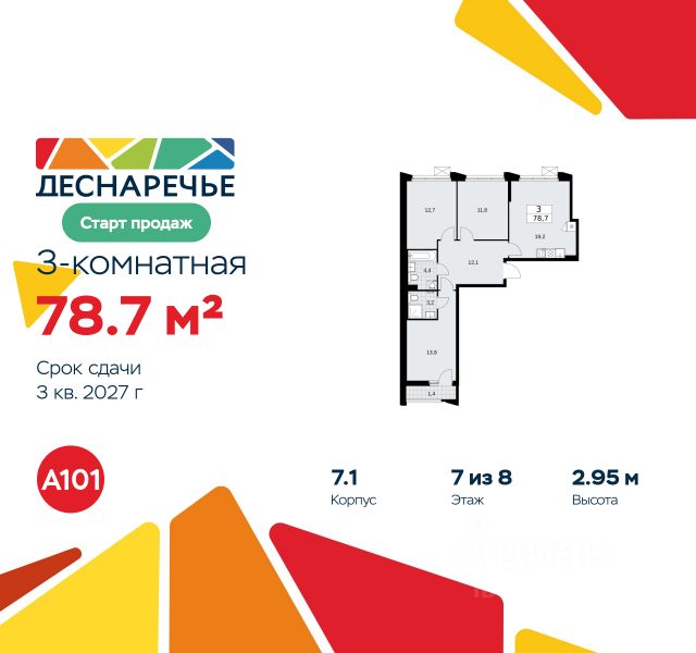Продаётся 3-комн. квартира площадью 62,4 кв.м на 7 этаже 14 этажного дома (Корпус 69.2, Секция 2) проекта ПИК Саларьево парк. Светлый просторный подъезд на уровне земли, функциональная планировка, большие окна, c отделкой. Жилой район "Саларьево парк" расположен в Новой Москве, в четырёх километрах от МКАД по Киевскому шоссе. Две станции метро: "Саларьево" и "Филатов луг", — находятся в пешей доступности от проекта. Дойти до них можно за 510 минут. В квартале уже создана качественная среда, где есть абсолютно всё для полноценной жизни, работы и отдыха. Благодаря удобному расположению проекта всё важное будет рядом: детские сады, школы, кафе и рестораны, шопинг в торговых центрах, фитнес и даже аэропорт. Все корпуса в квартале гармонично сочетаются, образуя единую городскую среду. Между собой их объединяет невысокая этажность и натуральная цветовая гамма. Здесь приятно гулять и проводить время на улице всей семьёй. В "Саларьево парке" создана уникальная образовательная среда, включающая в себя шесть школ, рассчитанных на 6 250 учеников. Две из них уже открыты, их посещает 2 300 детей. Также на территории "Саларьево парка" находится 12 детских садов, один из которых с бассейном. Сейчас уже открыты 7 садов. В "Саларьево парке" открыта уникальная игровая площадка — PlayHub "Оригами". Здесь есть ручей, горка-труба и рельефные холмы. Взрослые смогут отдохнуть в уютном кафе, пока дети играют. Также на территории проекта есть SportHub — большая спортивная зона, разделённая по интересам и возрастам. Здесь можно заниматься разными видами спорта: футболом, баскетболом, волейболом и стритболом. Зимой центральную часть площадки превращают в каток. Во дворах-парках жилого квартала есть места для отдыха, детские и спортивные площадки. На первых этажах домов расположены магазины, кафе и полезные сервисы. Также вблизи проекта есть несколько масштабных торговых центров. До ТЦ "Саларис" пять минут пешком, до "Рио", Metro Cash & Carry и "Леруа Мерлен" — пять минут на автомобиле. Артикул 1023492 (Застройщик ООО "Специализированный Застройщик "Тирон")