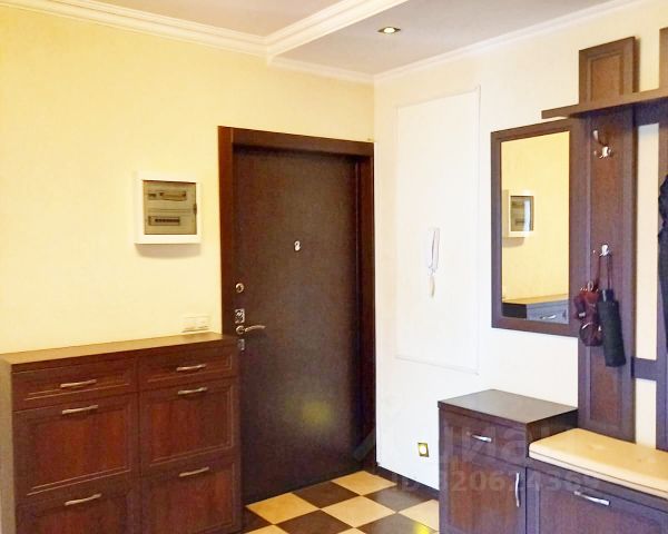 В квартире очень просторная прихожая, оборудованная качественной мебелью. Благодаря объемному пространству можно разместить в прихожей дополнительную мебель по своему усмотрению.