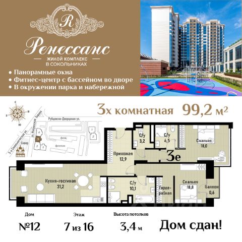 В продаже просторная квартира с кухней-гостиной и двумя спальнями в жилом комплексе бизнес+ класса СТОУН Сокольники. Идеально подойдет молодым парам, которые только планируют пополнение, а также семьям, где малыш уже подрастает. Проект расположен рядом с парком "Сокольники" в пешей доступности от метро. В нескольких километрах от комплекса находятся удобные выезды на ТТК и Садовое кольцо, обеспечивающие быстрый доступ в разные части Москвы. Транспортная доступность: - 10 мин. до м. "Сокольники" и "Электрозаводская" - 12 мин. до парка "Сокольники" - 2 км до ТТК - 6 км до Садового кольца Архитектурная концепция проекта разработана архитектурным бюро WALL. Жилой комплекс состоит из трех разновысотных башен с увеличенной площадью остекления, которая позволит насладиться городской панорамой и видами на парк "Сокольники". Планировки квартир в СТОУН Сокольники создавались с учетом разнообразия современных сценариев жизни в городе. В проекте предусмотрены просторные кухни-гостиные, изолированные мастер-спальни, планировки для семей с детьми разных возрастов. Благодаря грамотному зонированию можно насладиться как уединением, так и временем с семьей. В проекте СТОУН Сокольники большое значение придается бытовому комфорту будущих жителей: потолки высотой 3,1 м, расширенная торговая и социальная инфраструктура, собственный подземный паркинг и частный детский сад на закрытой территории. Во всех входных группах предусмотрены помещения для временного хранения СИМ, лапомойки, гостевые санузлы, а также комнаты матери и ребенка. На каждом этаже появятся колясочные для дополнительного удобства семей с маленькими детьми. STONE - девелопер коммерческой и жилой недвижимости классов бизнес и премиум в Москве с 19-летним опытом. С 2022 года занимает лидирующую позицию на офисном рынке (рейтинг РБК). Сегодня в портфеле девелопера представлено 3 млн кв. м построенных, строящихся и проектируемых объектов, из которых более 1 млн кв. м находятся в стадии строительства. Компания имеет самый масштабный проектный портфель офисной недвижимости класса А на московском рынке (данные NF Group) и возглавляет топ-6 устойчивых девелоперов согласно исследованию F Research от Forbes. В 2023 году частью стратегии по развитию компании стала диверсификация портфеля, в результате которой девелопер провел ребрендинг и запустил направления STONE Office и STONE Dom. В настоящий момент девелопером представлено 16 бизнес-центров класса А, а также 3 жилых комплекса бизнес+ класса. ID.17370
