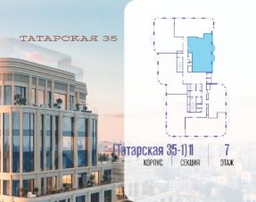 Продается просторная квартира площадью 160.80 м2 в жилом комплексе ТАТАРСКАЯ, 35. Квартира находится в 1 секции корпуса 1. Этаж 7-й из 20. Квартира без чистовой отделки, с просторной кухней 39.50 м2. Жилая площадь 50.80 м2. Высота потолка от 3.50. ТАТАРСКАЯ, 35 - новая архитектурная доминанта Замоскворечья, достопримечательность на фотопанорамах исторического центра Москвы. Элитный дом, созданный для тех, кто умеет смотреть далеко вперед, мыслить масштабно и воплощать собственный сценарий жизни. Вдохновляющие прогулки по променаду набережной, в уютных переулках, в парке "Зарядье", в Михайловском саду и Репинском сквере. Наслаждение высоким искусством в Третьяковской галерее, Доме Музыки, театральном музее им. А.А. Бахрушина, театре на Малой Ордынке. За окнами - Кремль, высотка на Котельнической, панорамы Замоскворечья и острова Балчуг, огни Садового кольца. Собственные спорт-румы, детская, репетиторская, бьюти-пространства, деловое пространство с коворкингом, переговорной и сигарной. Собственный трехуровневый фитнесс-центр с бассейном, тренажерным залом, сауной, хаммамом, массажным кабинетом. Площадь двора - 1,8 га, половина территории покрыта деревьями, кустарниками и лужайками. Дом расположен внутри Садового кольца - отсюда в считанные минуты можно добраться до важнейших мест столицы: достопримечательностей и парков, театров и ресторанов, деловых и административных центров. 7 минут до Кремля на автомобиле, 15 минут до Третьяковской галереи и 8 минут до Садового кольца пешком. Планировочные решения и визуализации предварительны, возможны изменения.