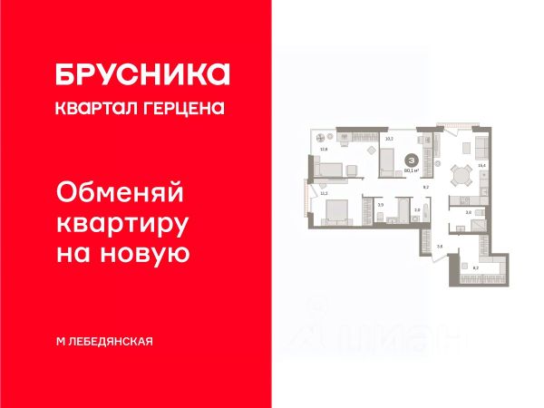 Квартира с кухней-гостиной и тремя спальнями в Квартале Герцена. Особенности планировки: балкон, второй санузел, гардеробная, окна на две стороны, постирочная, предчистовая отделка, французский балкон. Квартиру можно купить онлайн. В квартире выполнена отделка "под чистовую". Установлены окна с двойным стеклопакетом, радиаторы с терморегуляторами. На полу цементно-песчаная стяжка. В квартиры заведены кабели для интернета и ТВ. Входная сейф-дверь не требует замены. Организован поквартирный учёт энергоресурсов (водоснабжение, отопление, электричество). Квартал "Герцена" расположен в Бирюлёве Восточном — районе на юге Москвы. Дорога до ТТК займет всего полчаса на автомобиле, до станции метро и ж/д станции "Царицыно" — 13 минут, а до автовокзала "Южные ворота" — 20 минут. До автобусных остановок можно дойти пешком. В 2027-2028 году откроется новая станция метро "Лебедянская", дорога до неё займет всего 18 минут. Общая площадь "Квартала Герцена" составляет 27,3 га. Дома состоят из разноуровневых секций высотой от 6 до 55 этажей с видовыми террасами и балконами. На территории квартала будет построена поликлиника, детский сад на 350 мест и воспитательно-образовательный комплекс на 1075 мест, а также рестораны, клиники, магазины и салоны красоты. Объявление от застройщика. Ипотека, материнский капитал. Обмен — один из способов покупки. Обмен подойдёт, если вы хотите быстро поменять старую квартиру на новую. Получить ипотеку или рассрочку, а также обменять квартиру можно онлайн. Запишитесь на онлайн-презентацию по телефону или на сайте. В проекте доступна программа обмена: мы выкупим вашу старую квартиру, направим средства на оплату новой и сопроводим сделку. Доступны опции: проживание до 30 месяцев, закрытие ипотеки, выделение детских долей, получение средств на ремонт. квартиры в нашей базе: ГРЦ01.2-Ж4.8.14.