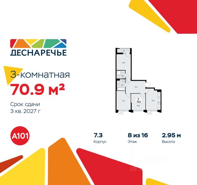 Продается 3-комн. квартира, без отделки в ЖК "Новые Ватутинки. Квартал у реки". Общая площадь: 67.5 кв.м., жилая: 41.0 кв.м., площадь кухни: 6.6 кв.м. Этаж: 8. Район расположен всего в 14 километрах от МКАД по Калужскому шоссе, в центральной части Новой Москвы. Добраться сюда можно на автобусах и маршрутках от станций метро "Ольховая", "Теплый Стан" и "Бульвар Адмирала Ушакова". Время в пути от "Теплого Стана" и "Ольховой" занимает в среднем до 20 минут, даже в часы пик. В 2025 году рядом начнется строительство новой станции метро "Десна" (Троицкая линия), которая будет находиться в пешей доступности. Благодаря удачному расположению и развитой инфраструктуре Новые Ватутинки становятся одним из культурных и образовательных центров Новой Москвы. Строительство нового микрорайона началось с трех жилых корпусов, оснащенных подземными паркингами, индивидуальными кладовыми и коммерческими помещениями на первых этажах. Заречный имеет два удобных выезда на Калужское шоссе, что обеспечивает свободный проезд без заторов. В будущем жители также смогут пользоваться станцией метро "Десна", выбрав общественный транспорт. В районе предусмотрено строительство двух образовательных комплексов с детскими садами и школами, поликлиники и торгового центра Сквозь весь микрорайон — от будущей станции метро до набережной и парка "Андерсен" — протянется пешеходный бульвар длиной 1,5 км с уютными скверами, мини-площадями и садами. Архитектурная концепция предусматривает постепенное снижение этажности ближе к бульвару, создавая приятную для жизни и прогулок городскую среду. Принцип "город в гармонии с природой" реализован через дворы без машин и безбарьерное пространство на всей территории. Внутренние дворы будут предназначены для тихого отдыха и детских игр, а активные зоны разместятся на крупных плейхабах и в общественных пространствах. "Андерсен" станет центром активного досуга: здесь запланированы вело- и пешеходные маршруты, спортивные площадки, зоны для индивидуальных тренировок на свежем воздухе, а также места для рыбалки, сапбординга и тюбинга. Квартирный фонд отличается разнообразием планировок и продуманной эргономикой: просторные квартиры, большие лоджии, по две ванные комнаты. Свободные планировки позволят легко зонировать пространство под личные нужды — создать уютную спальню, рабочее место или гостиную. В цокольном этаже предусмотрены кладовые для хранения сезонных и крупных вещей, а также подземный паркинг с индивидуальными и семейными машино-местами. Спуститься к автомобилю можно прямо из квартиры — на лифте. Проект включает систему видеодомофонии: жители смогут получать уведомления о визитах гостей в режиме онлайн, открывать входную дверь удалённо, сохранять снимки с панели вызова, а также при желании — подключить наблюдение за камерами в лифтах через мобильное приложение. Выдача ключей в 2027г.