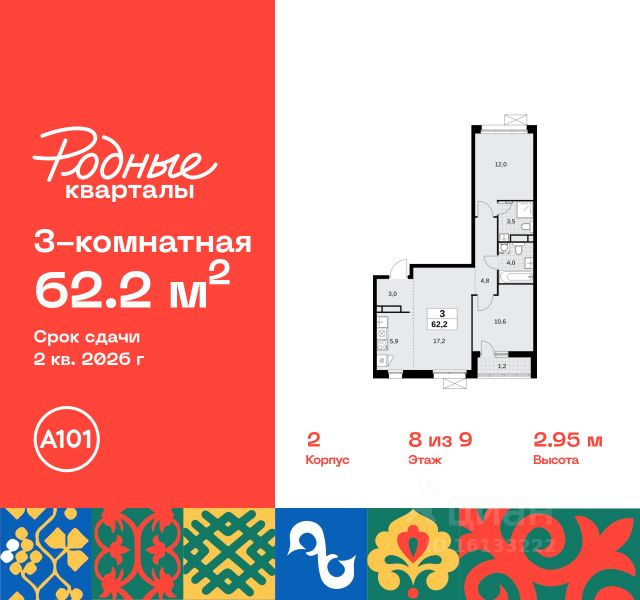 Продается трехкомнатная квартира с отделкой в 7 фазе города-парка "Первый Московский". Общая площадь квартиры - 74,3 кв. м, этаж 8 из 20. Срок сдачи - 1 квартал 2027 года. Тип дома - монолитный. Цена указана при 100% оплате. Новый корпус состоит из 3 секций: - 1 и 2 секции - с отделкой White Box с возможностью приобретения чистовой отделки за дополнительную плату - 3 секция - без отделки Город-парк "Первый Московский" расположен всего в 7 км по Киевскому шоссе (Новая Москва). Из города-парка прямой выезд на Киевское шоссе и трассу Солнцево-Бутово-Варшавское шоссе. ТРАНСПОРТНАЯ ДОСТУПНОСТЬ: - 5 мин. на личном автомобиле или 10 мин. на автобусе 189 и 147 до станции метро "Филатов Луг" - 25 мин. пешком до станции метро "Филатов Луг" ИНФРАСТРУКТУРА: Около 7 фазы запланировано строительство детского сада, школы, 2 многоуровневых паркингов. Также на территории проекта есть все необходимые объекты действующей социальной и бытовой инфраструктуры: 8 детских садов, 6 школ, ТЦ, магазины, паркинги, аптеки и др. БЛАГОУСТРОЙСТВО: - Дворы без машин - Игровые зоны для детей, зоны для занятия спортом, зоны для отдыха с навесами/качелями - Детские площадки разделены по возрастным группам - Пешеходный и веломаршрут с двухполосной велодорожкой 2,5 м в ширину - Озеленение с растениями всесезонного цветения ОСОБЕННОСТИ АРХИТЕКТУРЫ: В каждой секции 3 корпуса предусмотрены: - колясочные во входных группах - кладовые помещения с -1 по 20 этажи - коммерческие помещения на 1 этажах - по 4 лифта: 2 пассажирских, 2 грузовых - видеонаблюдение, установленное в холлах первых этажей, у подъездов и на прилегающей территории АВТОРСКИЙ ДИЗАЙН: Входные группы выполнены по авторскому дизайну, оснащены системой "тёплый пол". В каждой входной группе будет располагаться комфортабельная зона ожидания с мягким диваном, акцентными пуфами и столиком.